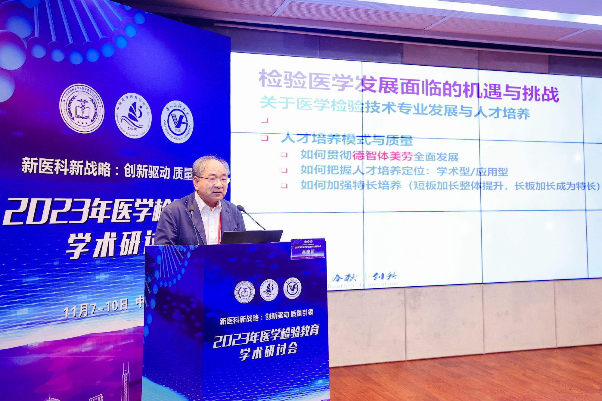 检验诊断关键技术浙江省工程研究中心主任,中国医师协会检验医师分会常务委员、线粒体疾病检验医学专家委员会主任委员,原杭州医学院党委书记吕建新教授作了题为“新时期检验医学教育改革的思考”的报告,探讨了检验医学教育在新时期的改革发展路径。