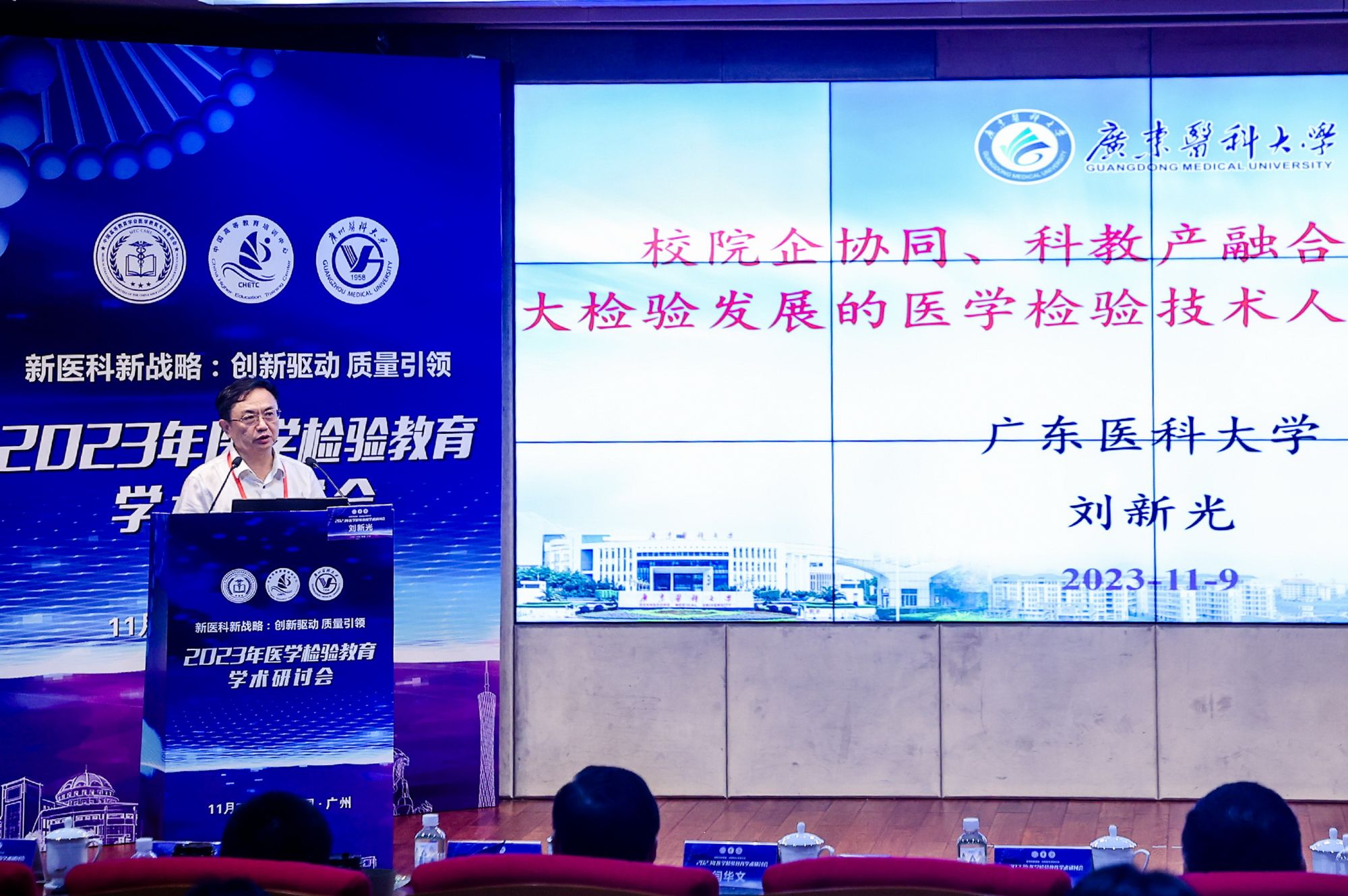 广东医科大学副校长刘新光教授、开云官网金域检验学院副院长邓小燕教授在交流期间分别作了题为“校院企协同、科教产融合培养适应大检验发展的医学检验技术人才的改革与实践”“五融双创助力国家现代产业学院建设”的报告。