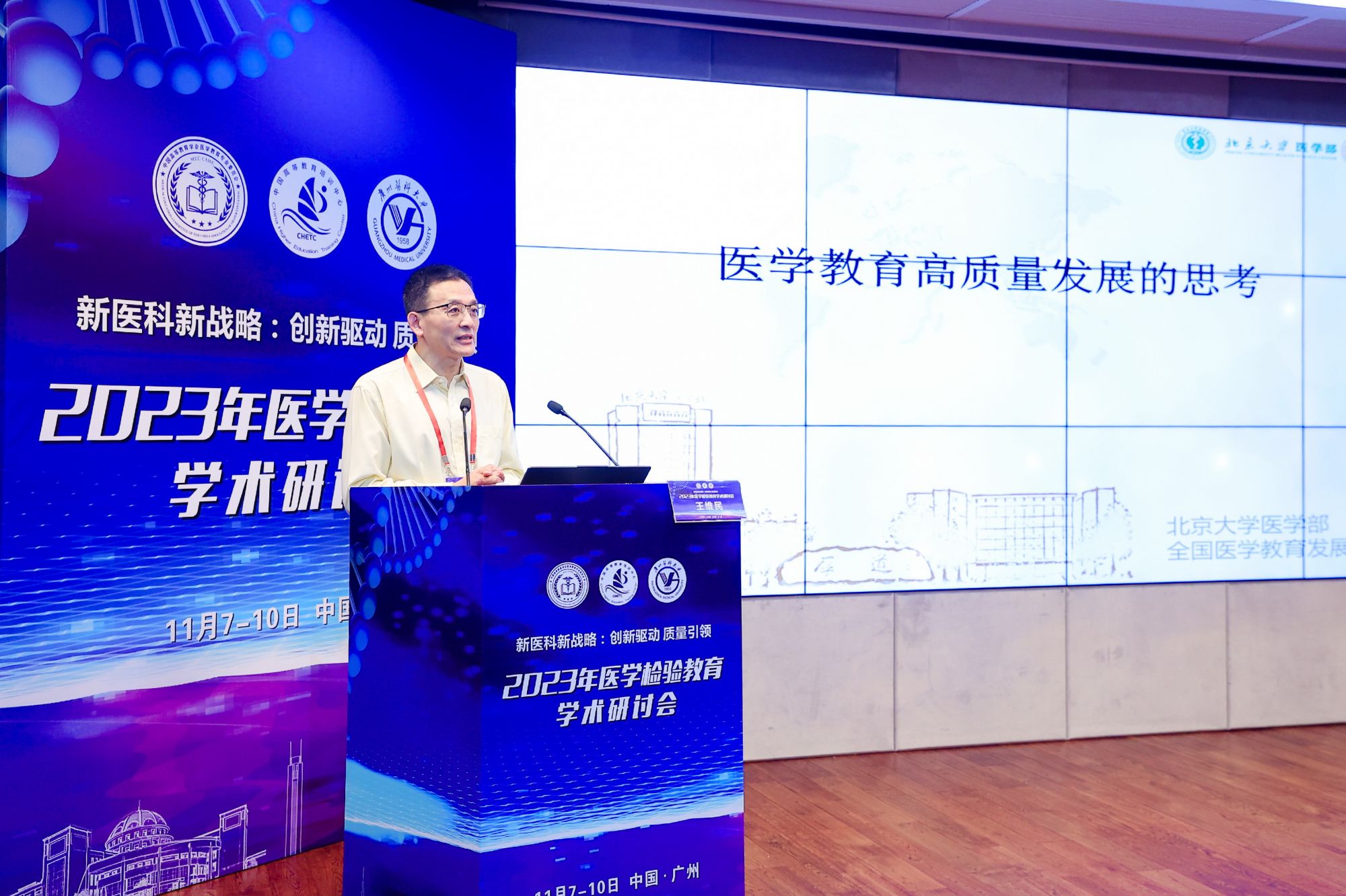 北京大学医学部副主任、中国高等教育学会医学教育专业委员会常务副理事长、全国医学教育发展中心常务副主任王维民教授作了题为“坚持医学教育标准,推进医学教育高质量发展”的报告,讲述了坚持医学教育标准对于提高医学教育发展质量、培养医学人才的重要性。