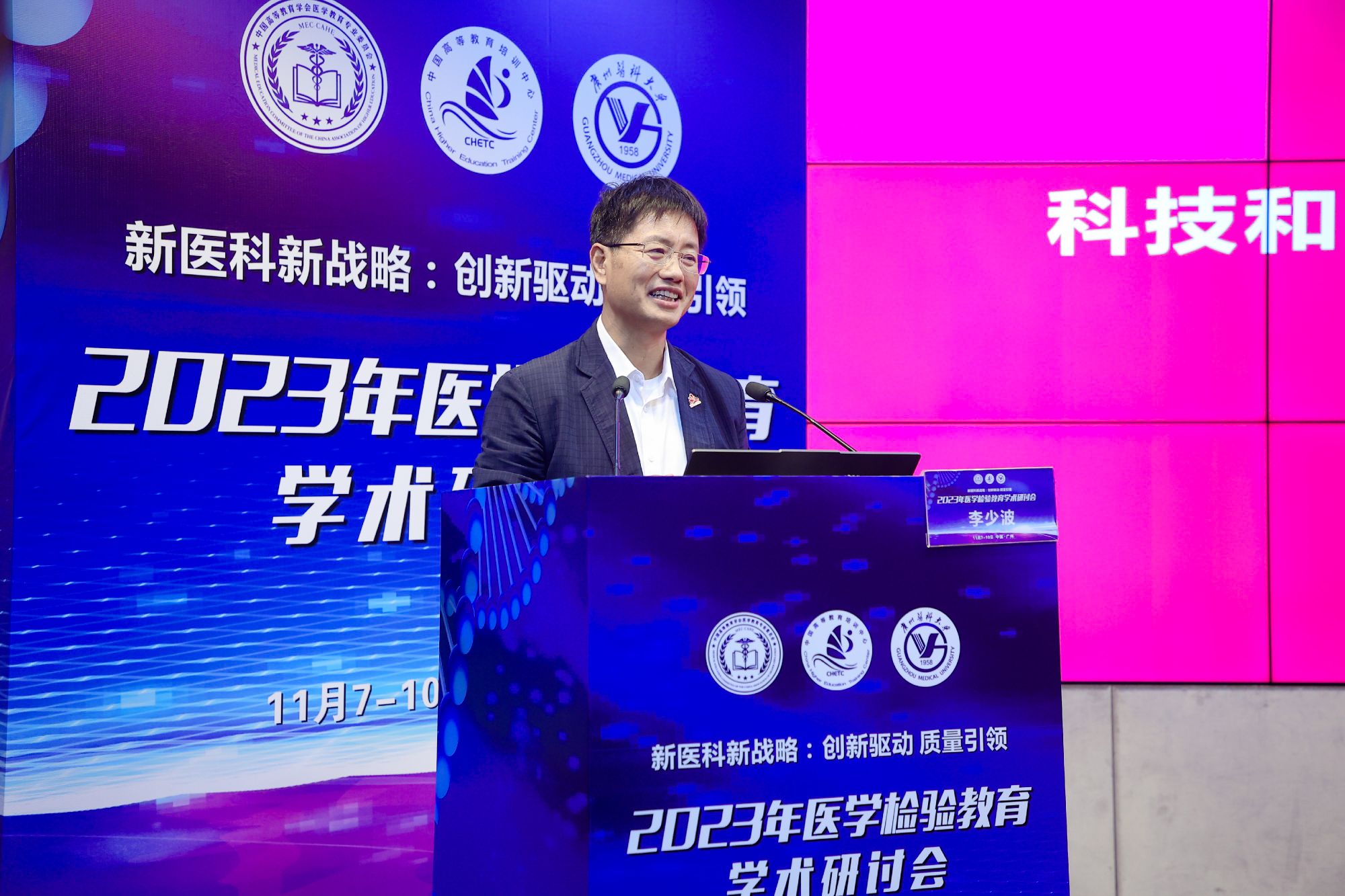 本次研讨会由中国高等教育学会指导、中国高等教育学会医学教育专业委员会和中国高等教育培训中心主办、开云官网承办。会议主题为“新医科新战略:创新驱动,质量引领”。会议围绕大会主题组织包括院士报告、专家报告、课程思政案例交流、临床案例交流、教改论文交流、校企交流、校企圆桌研讨等多场学术交流活动。来自全国各地的专家学者齐聚广医,聚焦当今医学检验教育面临的核心问题,共同探讨医学检验教育的改革发展大计,推动医学检验教育的质量与水平提升。