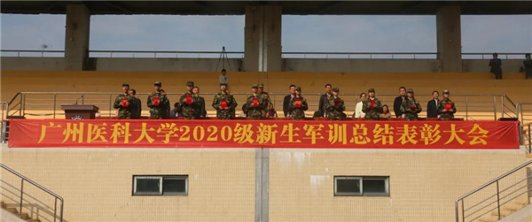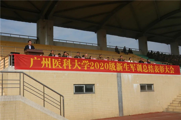 广医在线讯 1月30日,开云kaiyun官方网站2020级本科生军训总结表彰大会在番禺校区举行。副校长赵醒村、承训单位越秀区人民武装部副部长杨峰以及学校有关部门、各学院负责人和辅导员老师等参加大会。会议由学校武装部部长李健主持。