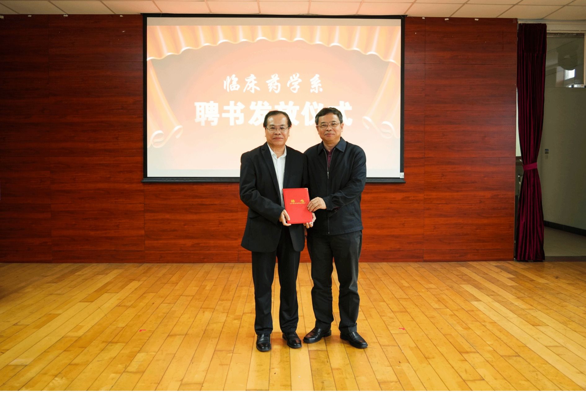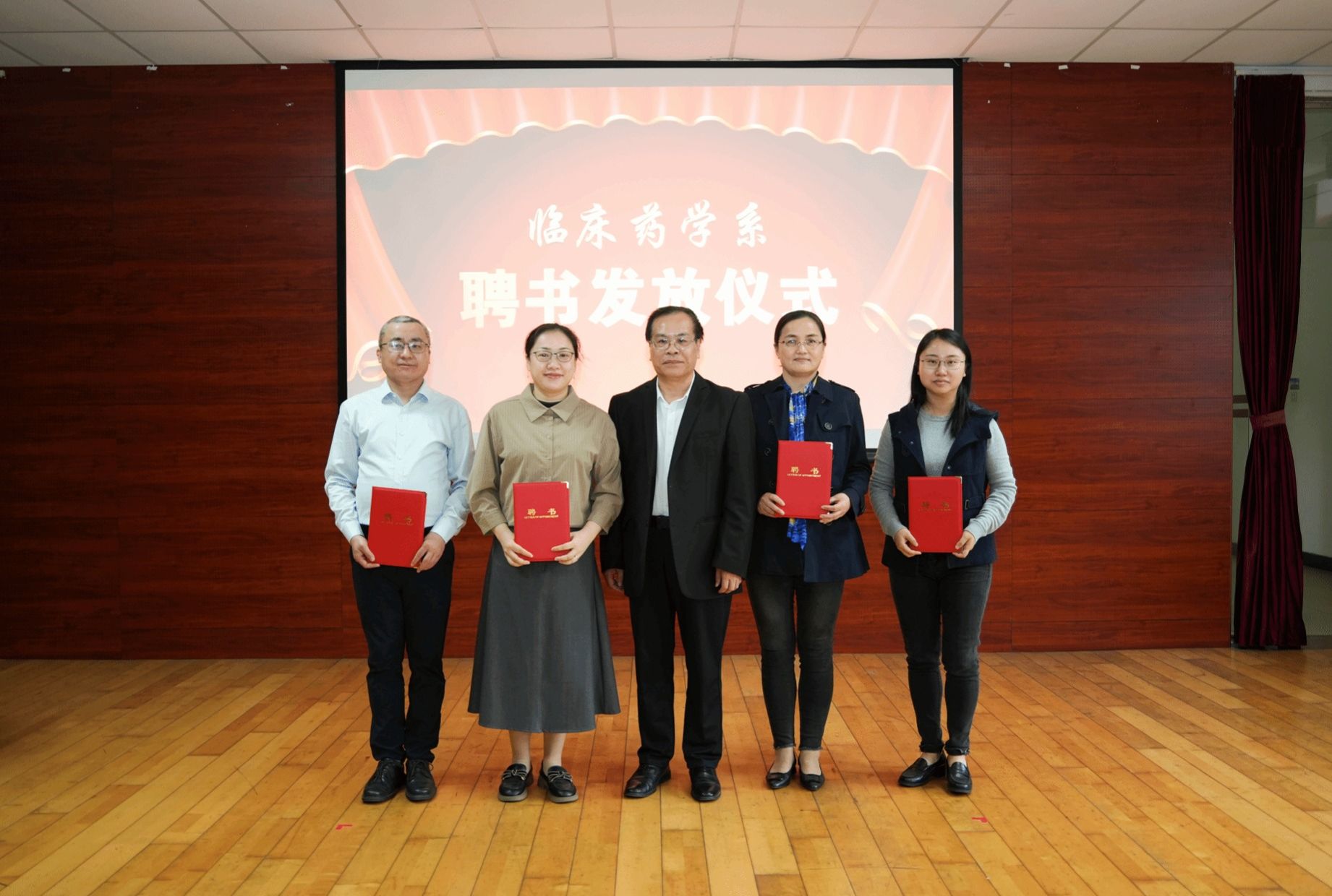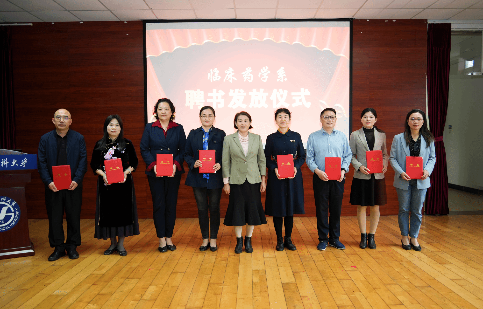 随后,唐小平书记、李建华副校长和相关部门、学院负责人共同为临床药学系揭牌,并为受聘人员颁发聘书。