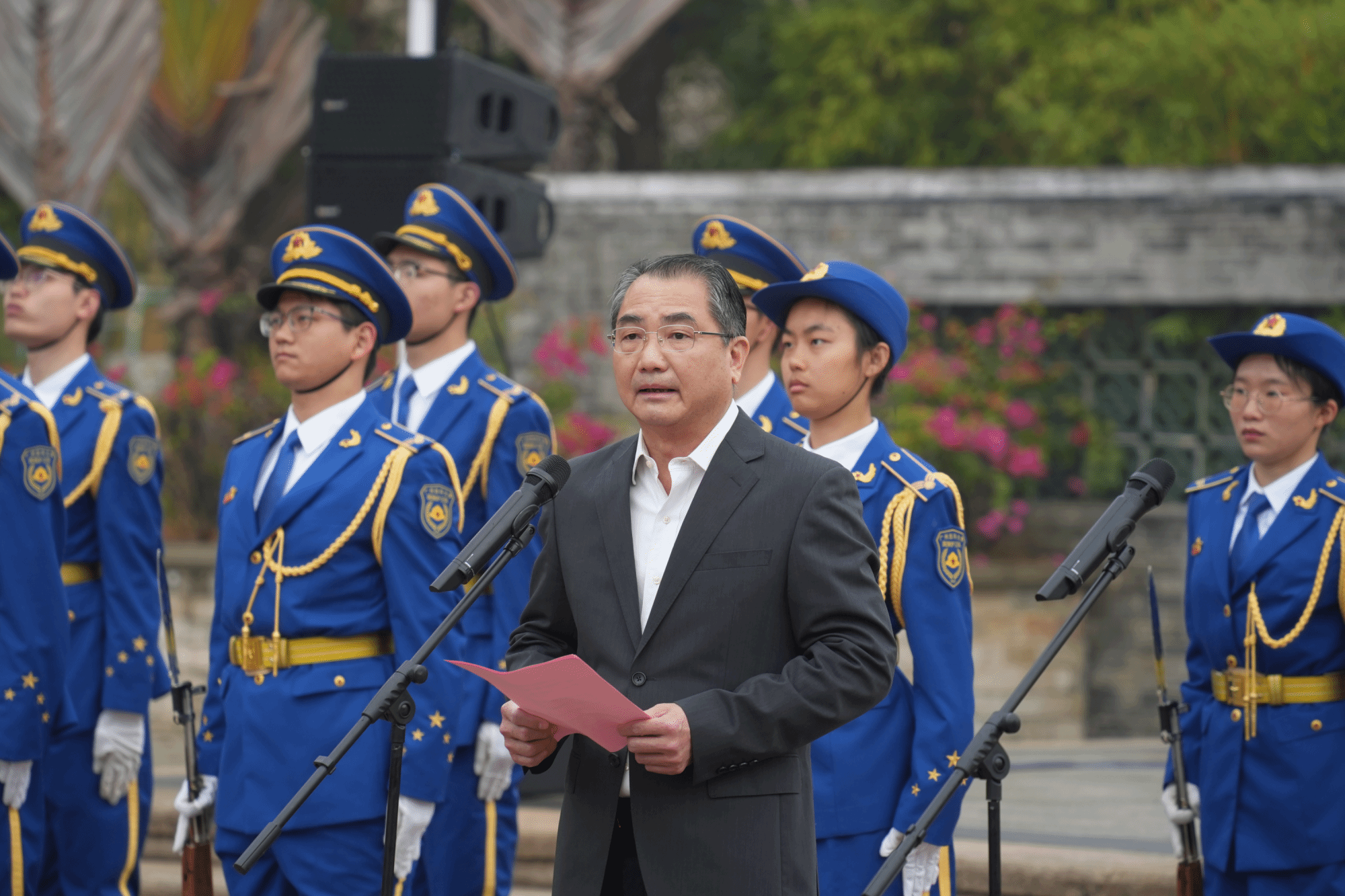 学校党委副书记陈晓辉主持升旗仪式。他希望全体师生员工坚持以习近平新时代中国特色社会主义思想为指导,深入学习贯彻党的二十大精神,围绕“双一流”建设目标任务,振奋披坚执锐的勇气,昂扬先行一步的锐气,以一往无前的精神状态、龙腾虎跃的奋斗姿态,绘就人勤春来早、功到自然成的高质量发展画卷,用优异成绩迎接中华人民共和国成立75周年。