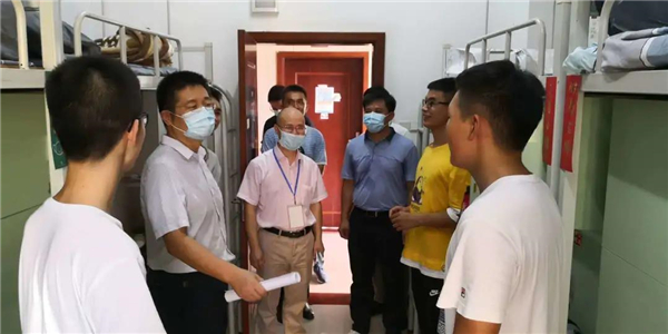 副校长赵醒村与学生工作处、后勤校产管理处相关负责人,辅导员老师到学生宿舍探望慰问新生。