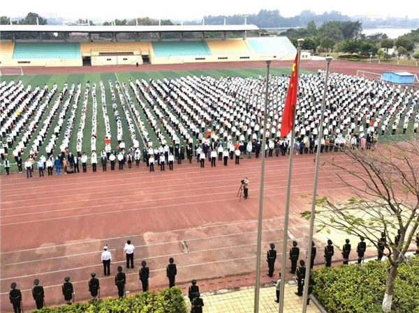 广医在线讯 3月1日早上,伴随着雄伟庄严的国歌,开云kaiyun官方网站春季“开学第一课”主题升国旗仪式在番禺校区举行。全体学校领导,各部处、学院负责人,全体辅导员、学生代表共2000余人参加仪式。