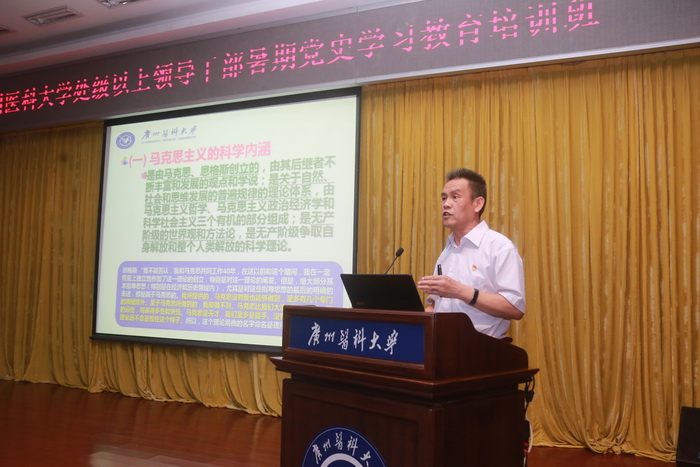 学校马克思主义学院院长刘俊荣教授作题为《以史为鉴、开创未来,必须继续推进马克思主义中国化》的辅导报告。他结合学习习近平总书记在庆祝中国共产党成立100周年大会上的重要讲话精神,从马克思主义为什么需要中国化、马克思主义中国化的成功经验、为什么必须继续推进马克思主义中国化等几方面,对习近平总书记关于“中国共产党为什么能,中国特色社会主义为什么好,归根到底是因为马克思主义行!”的重要论述进行深入的解读。