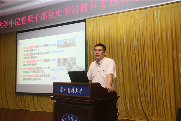 4月13日,专题研讨班开班式在番禺校区举行。校长冉丕鑫主持开班式,学校党委书记唐小平作动员讲话暨主题报告。