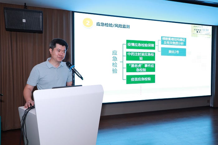 广东省药品检验所副所长邓锋代表广东省药品检验所罗卓雅教授作题为《药品快检的相关技术及研究进展》的学术报告