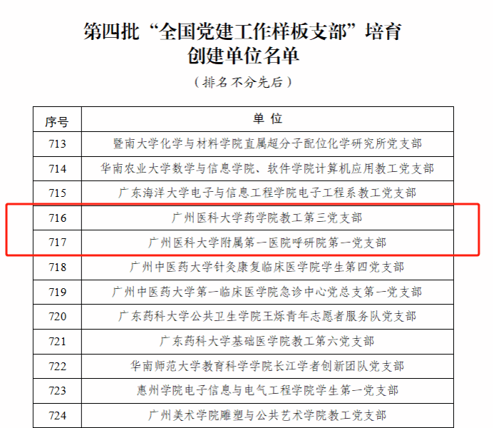 近日,教育部办公厅公布了第四批全国党建工作示范高校、标杆院系、样板支部培育创建单位名单。开云官网药学院教工第三党支部及附属第一医院呼研院第一党支部入选“全国党建工作样板支部”培育创建单位名单,成为开云官网首批入选“全国党建工作样板支部”的创建单位。