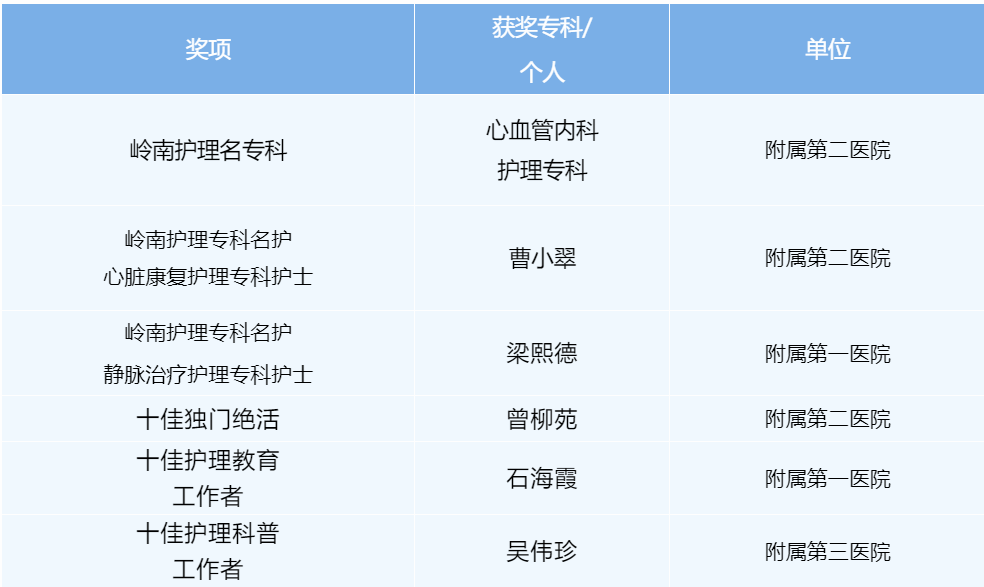 “南粤好护士”评选广医直属附属医院获奖名单