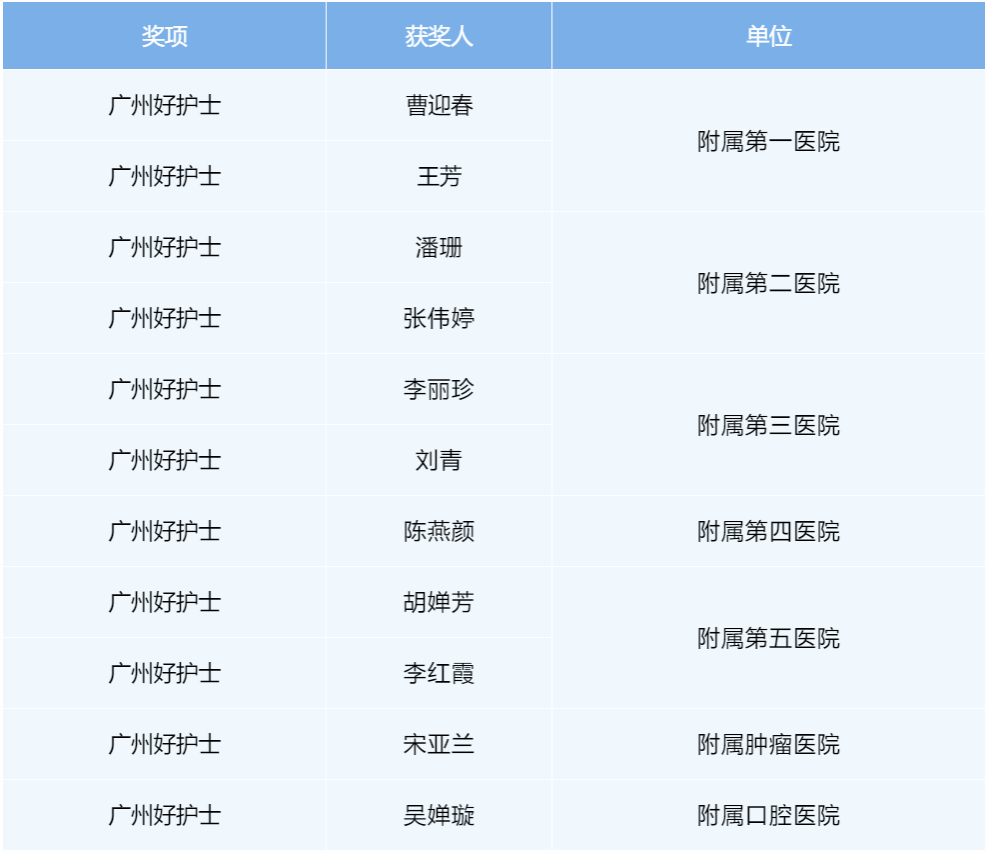 “广州好护士”评选广医直属附属医院获奖名单