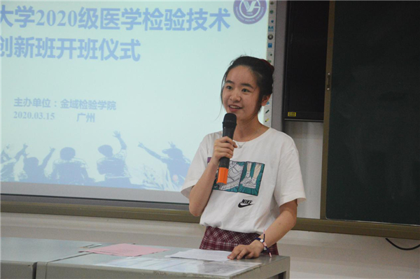 学院教学办负责人介绍了医学检验技术创新班开班情况。创新班是学院主动适应专业、产业发展要求,服务学生个性发展,深入推进创新创业教育的一项重大教学改革。首届20位创新班学生经过自主报名、专家面试遴选成班,由导师一对一培养,通过早进课题、早进实验室,早进团队来强化实践能力、创新能力,为今后的科研、创业打下坚实的基础。创新班汇聚了学院最优质的教学资源,导师团队来自广州呼吸健康研究院、基础医学院、卫生管理学院以及开云官网各附属医院等。
