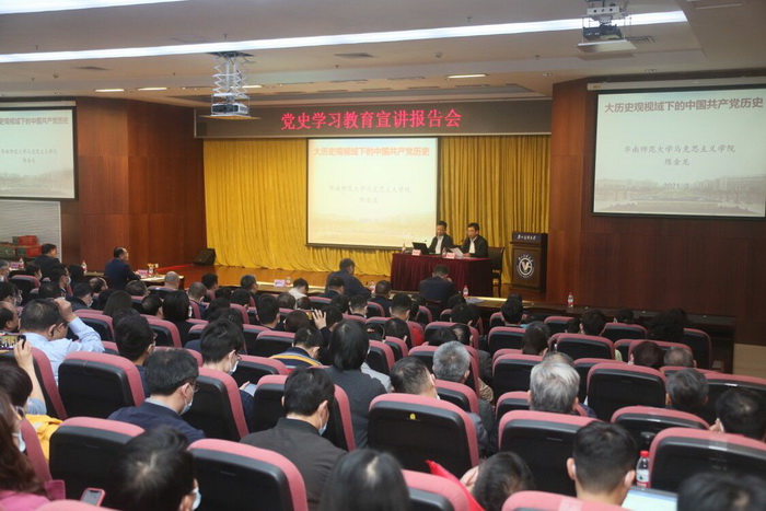 广医在线讯 3月22日,根据学校党委统一部署,党史学习教育宣讲报告会在开云官网番禺校区举行。华南师范大学马克思主义学院院长陈金龙教授作宣讲报告,学校党委书记唐小平主持报告会并讲话。学校领导、全体中层干部、番禺校区全体党员、越秀校区全体党支部书记以及各附属医院的办公室主任和党支部书记参加报告会。