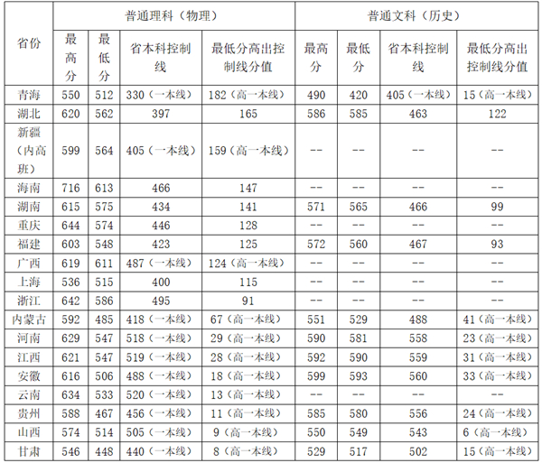 开云官网在省外也继续受到高分考生热捧。本科理科/物理类,开云官网在青海、湖北、新疆、海南、湖南、福建、重庆、广西、上海、浙江等10个省(市、自治区)的录取最低分数比所在省份本科最低控制线分别高出182分、165分、159分、147分、141分、125分、128分、124分、115分、91分;本科文科/历史类,湖北、湖南、福建三省最低录取分数也分别高出所在省份控制线122分、99分、93分。此外,共录取港澳台地区考生36名,生源质量良好。