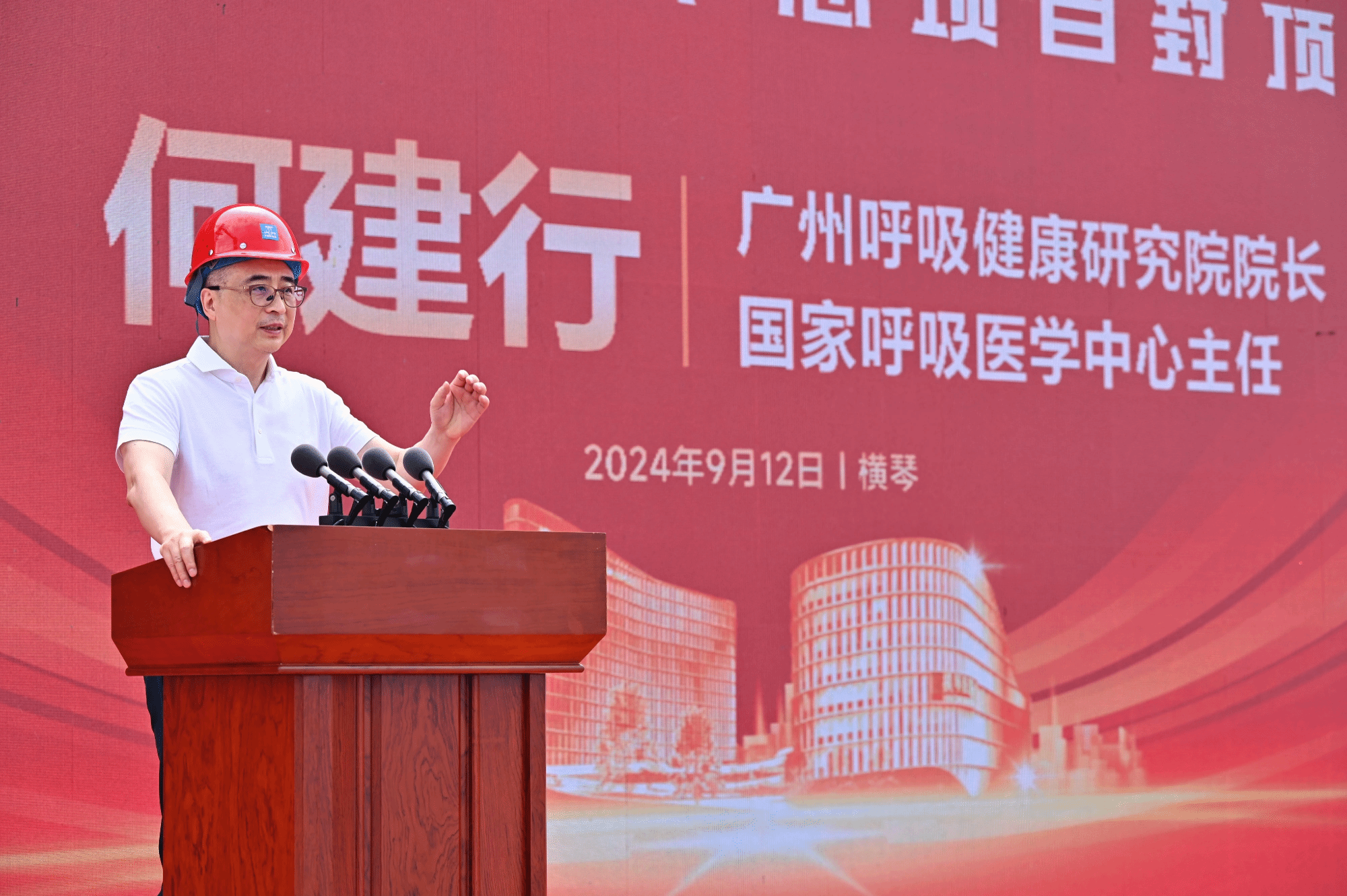 广州呼吸健康研究院院长、国家呼吸医学中心主任何建行教授为仪式致辞,他深情回顾了项目从谋划、布局到建设的十多年历程,对各级政府部门和社会各界的大力支持表示衷心感谢。