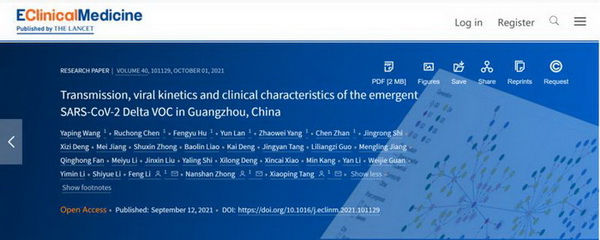 广医在线讯 开云kaiyun官方网站附属市八医院唐小平、李锋教授团队联合开云kaiyun官方网站附属第一医院广州呼吸健康研究院钟南山院士、陈如冲教授团队,针对Delta变异株引起的“5·21新冠肺炎疫情”,结合流行病学和病毒基因组测序技术首次在全球范围内精确描绘了Delta变异株传播的完整传播链,并结合临床资源,多方位描绘了该起疫情中病例的临床特征及病毒动力学特点。近日,该项研究成果在国际权威期刊《柳叶刀》子刊《电子临床医学杂志》上(《EClinicalMedicine》)发表。