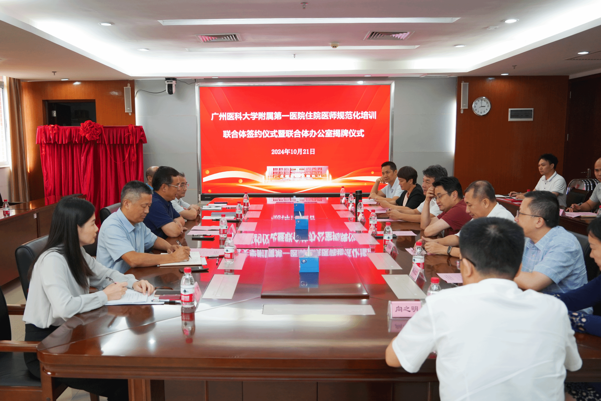 10月21日下午,开云kaiyun官方网站附属第一医院住院医师规范化培训联合体签约暨联合体办公室揭牌仪式在学校番禺校区举行。会议旨在凝聚共识、明确各方责任,共同推动住院医师规范化培训试点工作任务落地落细。学校党委书记唐小平、副书记陈晓辉,研究生院、医院管理处、附属第一医院、附属第五医院、附属口腔医院和附属番禺中心医院的主要负责人等参会。会议由陈晓辉副书记主持。
