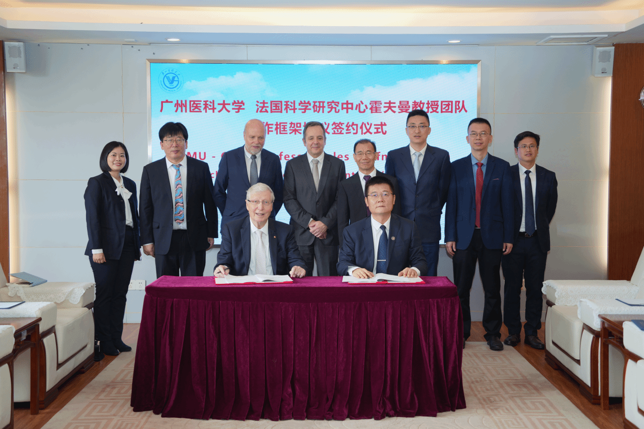 会上,赵醒村校长与霍夫曼教授分别代表广医、法国国家科学研究中心签订了合作框架协议。