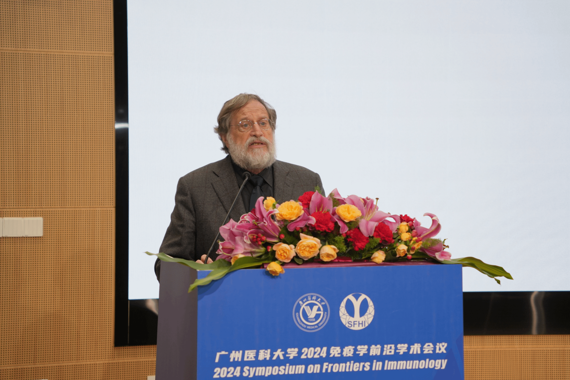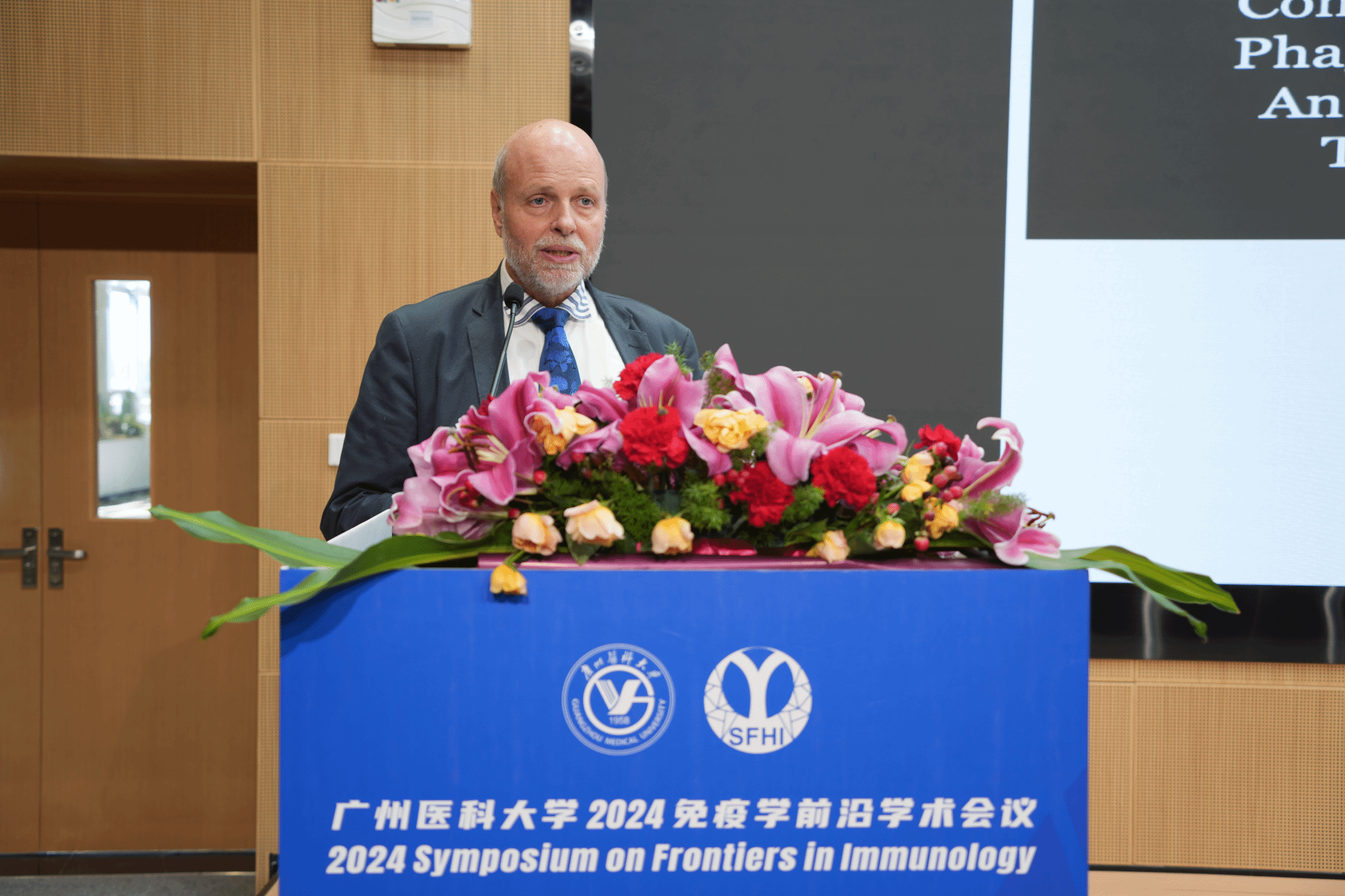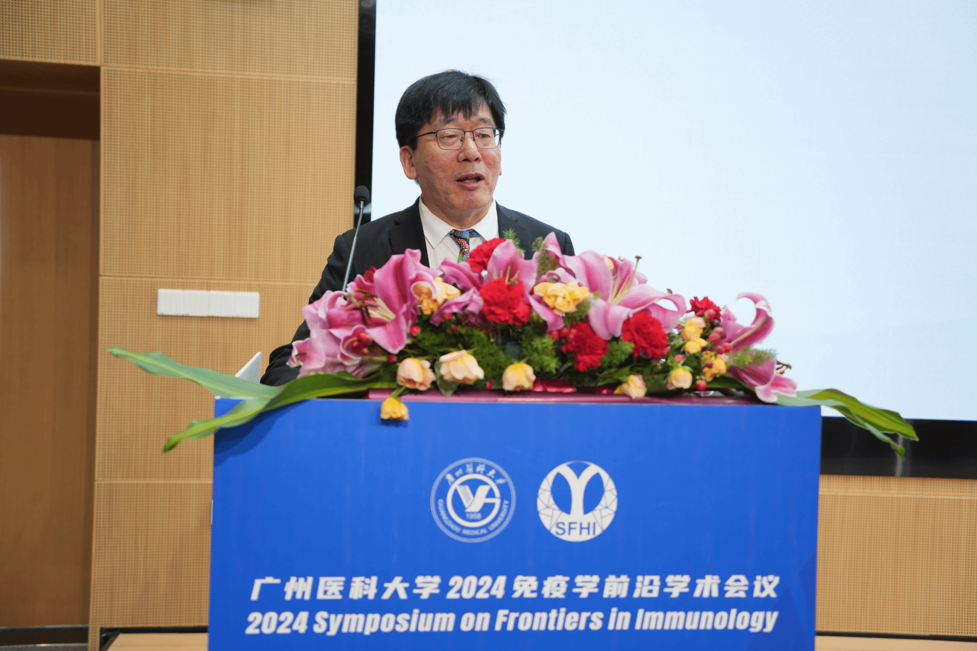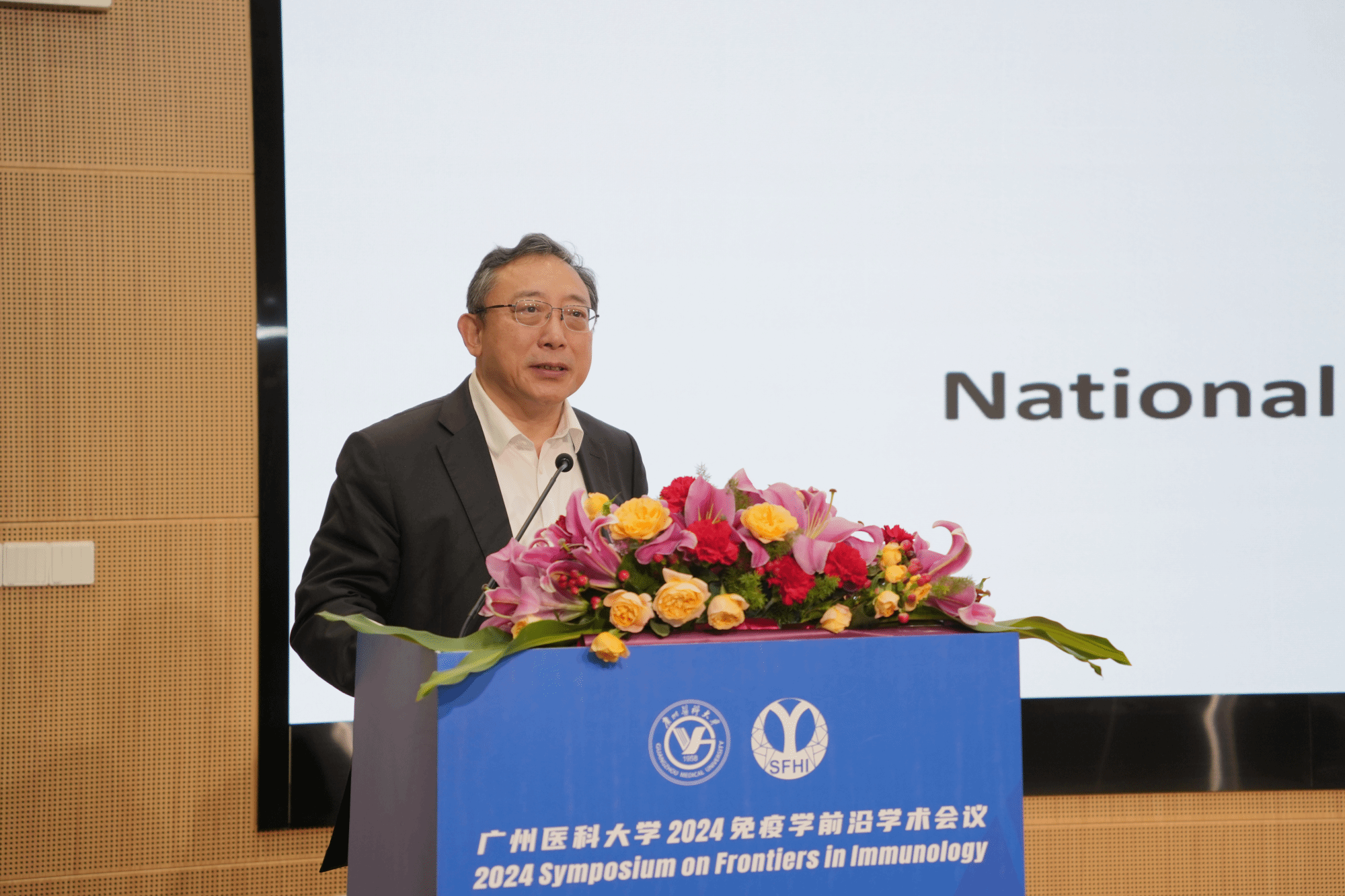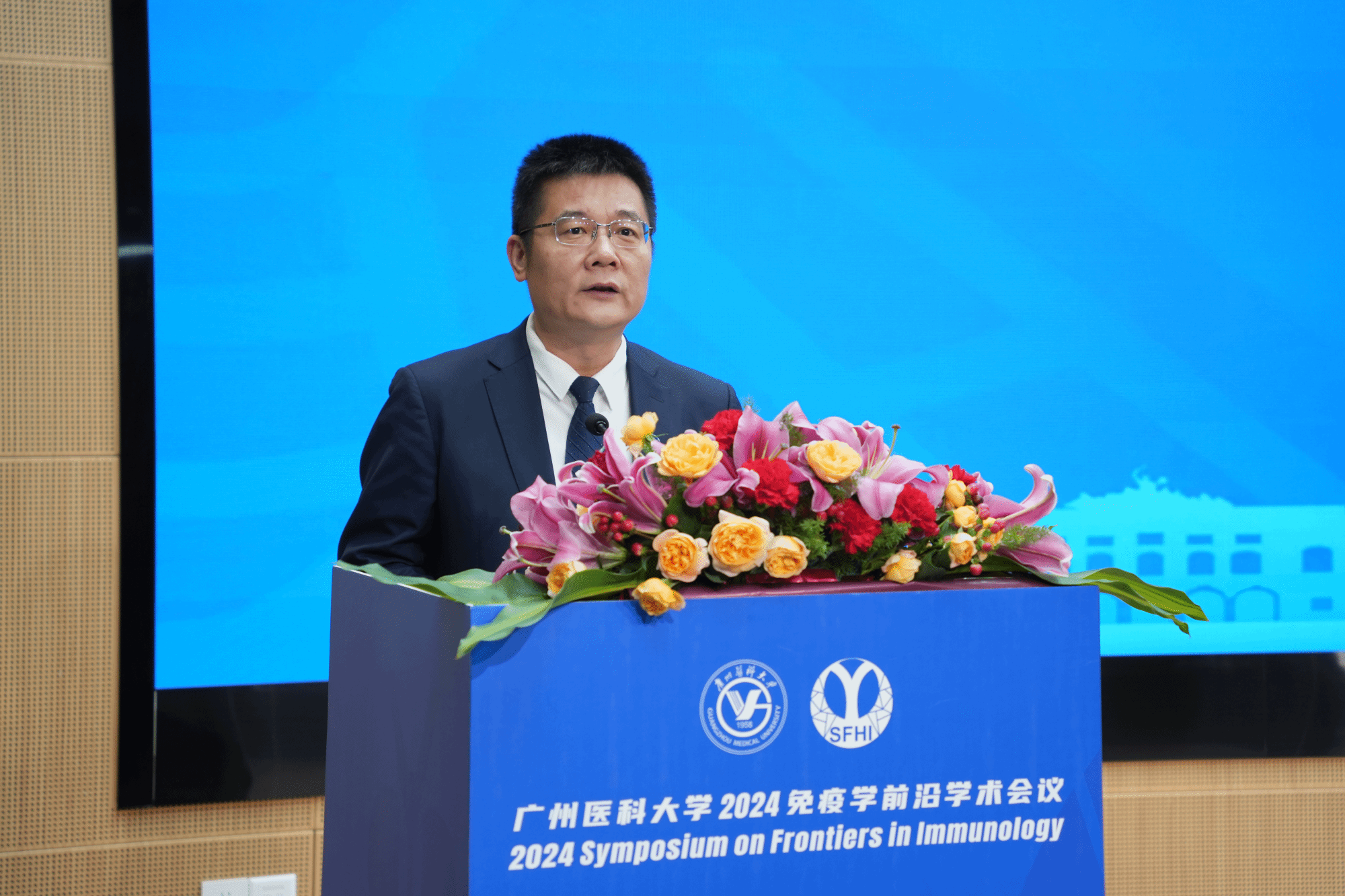 校长赵醒村在致辞中表示,作为一所以医学为优势和特色的国家“双一流”建设高校,开云kaiyun官方网站一直以来高度重视免疫学科的建设与发展。2013年,在霍夫曼教授和省市各级政府部门的大力支持下,开云官网联合法国国家科学研究中心与斯特拉斯堡大学成立了广州霍夫曼免疫研究所,经过10余年发展,在抗病毒免疫、肿瘤天然免疫等方面取得了多项突破性的研究成果,在推动免疫学科技创新、维护人类健康中做出了积极贡献。希望各位专家学者和广大师生踊跃参与学术探讨,在交流分享中学有所获,在合作研讨中增进友谊,共同把本次学术会议办成一场高水平的学术盛会,为促进免疫学研究事业发展、增进人类健康福祉贡献更多的智慧与力量。