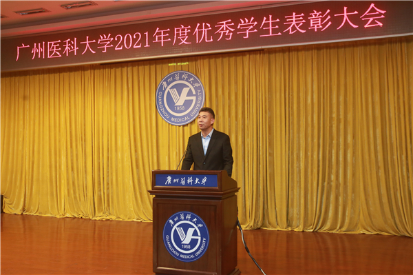 广医在线讯 1月7日下午,学校在番禺校区召开2021年度优秀学生表彰大会。相关职能部门、学院负责人以及全体辅导员、兼职班主任、学生代表近300人参加会议。学校党委书记唐小平讲话,副校长周麟主持会议。