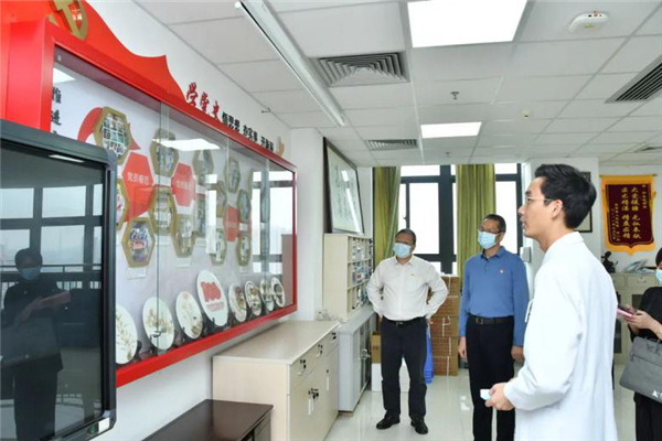 期间,指导组现场走访参观了广医五院-巴塞罗那心脏中心、I期临床研究病房、儿童肿瘤病区、智慧病房、泌尿外科等科室及相关党支部,进一步了解医院党史学习教育特色和“为民办实事”情况。
