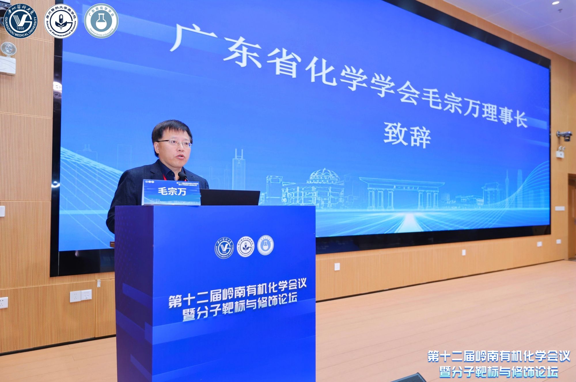 广东省化学学会理事长毛宗万教授代表该学会向本次论坛的举办表示热烈祝贺。他在致辞中指出,合成创新不仅涉及技术层面的突破,更是一种跨学科、跨领域的深度融合,需要各学科之间的紧密联系和交流合作,从而催生新的科学思想和技术路径。“岭南有机化学会议,不仅仅是会议,它肩负着使命与期待。”他期望本次大会能进一步推动岭南地区乃至全国在有机化学、药物化学、化学生物学等领域的研究和发展,为健康医药事业作出更大的贡献。