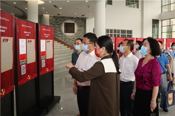 随后,学校领导和师生代表参观了“心向党,再起航”党史党建专题扫码阅读展。该展览汇集党史党建图书等优质资源,其中包括了习近平新时代中国特色社会主义思想丛书、理解中国系列书系、“四史”学习、智库报告共四个图书专题,以及“铭记党史忆时艰 不忘初心勇担当”和“学党章 话信仰”两个视频专题。展览在番禺、越秀两个校区同步展出,读者用手机扫码即可在手机阅读。