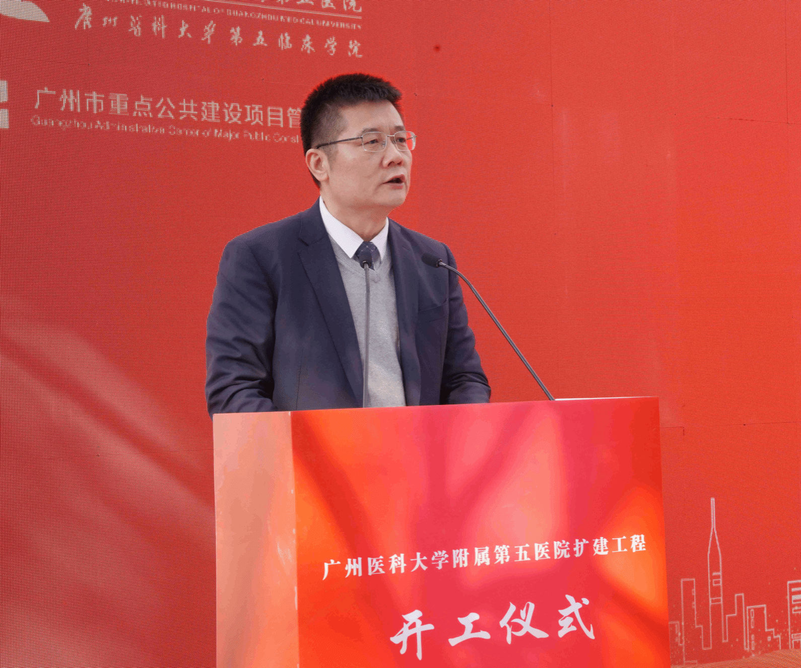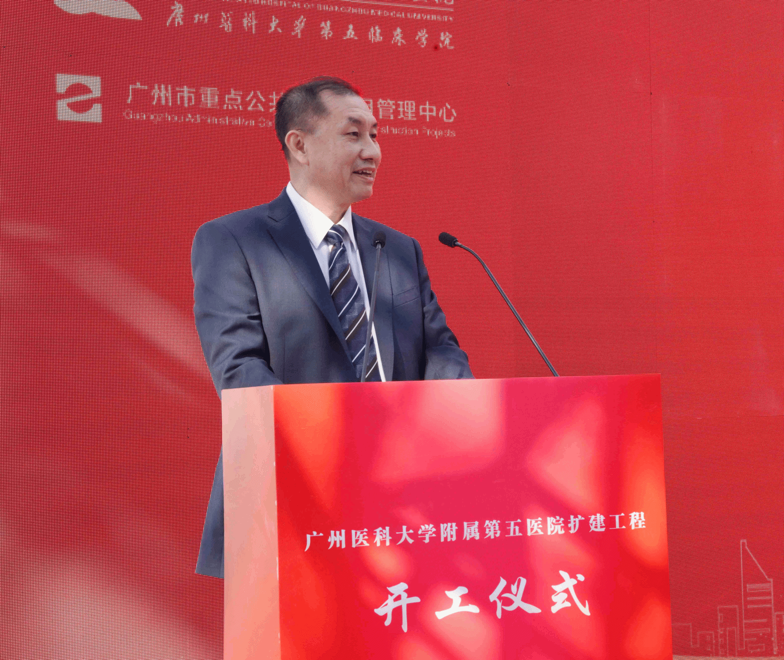 黄埔区委副书记邓奕中在致辞中表示,广医五院扩建工程开工是对广州开发区建区40周年的献礼。广医五院扎根黄埔区67年,是黄埔区百姓身边的“医靠”。在突发公共卫生事件中,医院为守护黄埔区人民生命健康构筑起坚固防线。在黄埔区大型活动中,医院提供全方位的医疗保障服务,有力提升了黄埔区在大型活动承办方面的综合保障能力。