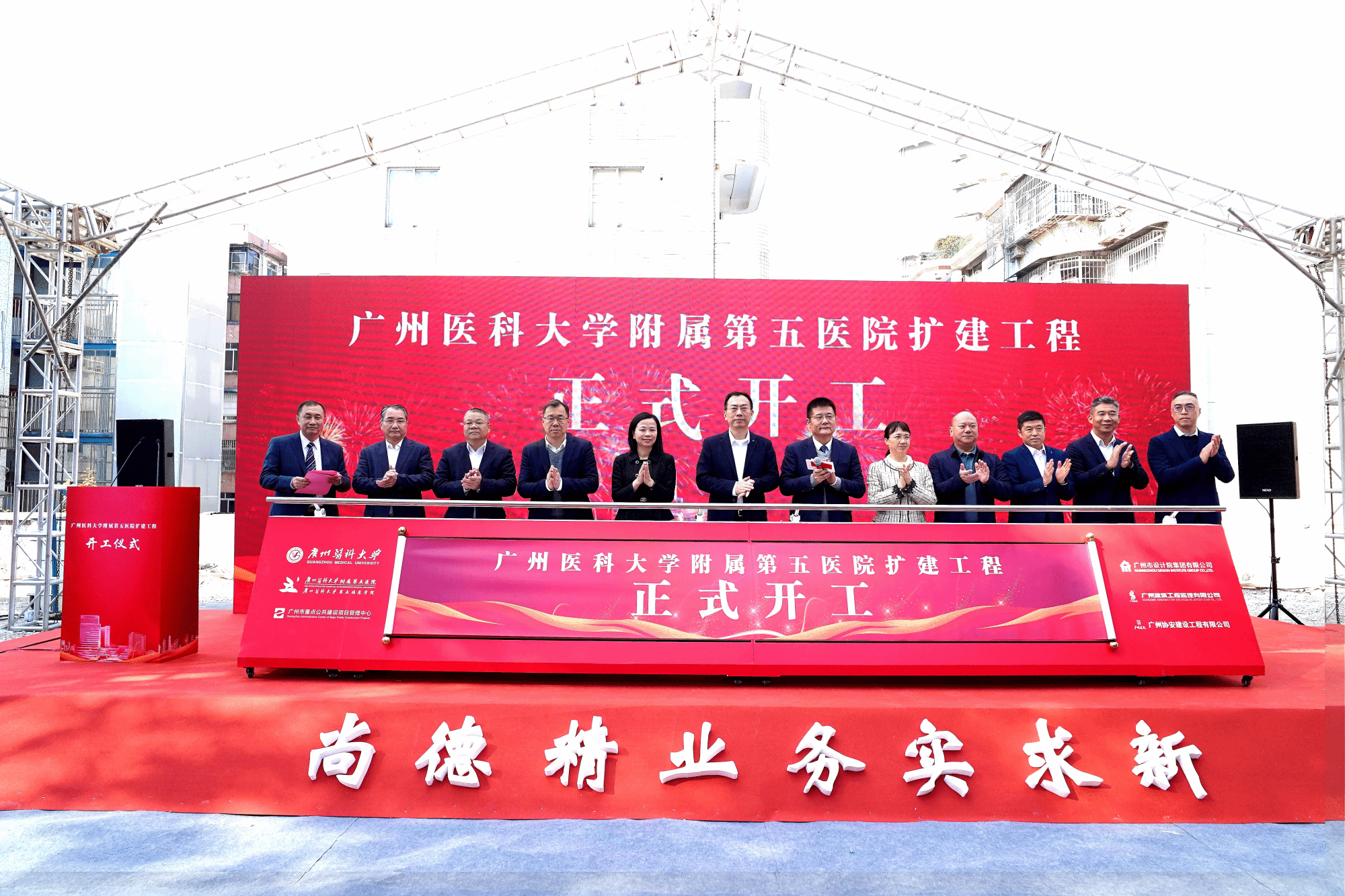 中国科学院院士、广州实验室常务副主任、生物岛实验室主任徐涛,广州市卫生健康委员会党组书记、主任陈斌,广州开发区管委会常务副主任、黄埔区区长冼银崧,广州市财政局党组成员、副局长刘志广,广州市重点公共建设项目管理中心党组书记、主任邓新勇,黄埔区委副书记邓奕中,广州开发区党工委委员、管委会副主任刘石,开云kaiyun官方网站校长赵醒村、党委副书记陈晓辉、副校长周麟,市政府有关部门领导,黄埔区各委局、各街道,中国科学院广州生物医药与健康研究院、生物岛实验室,以及项目设计单位、施工单位、监理单位的相关负责人,广医五院院领导、科室负责人代表等参加仪式。