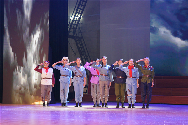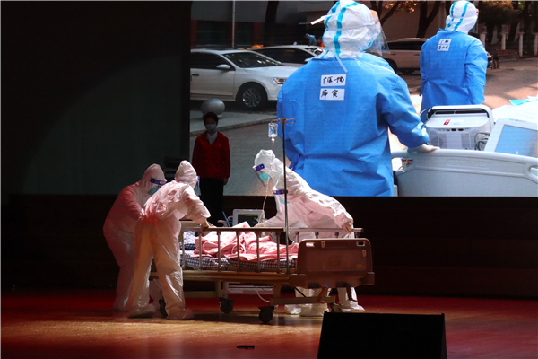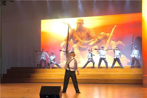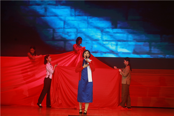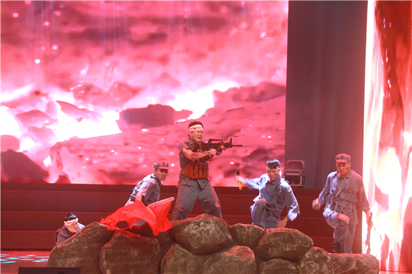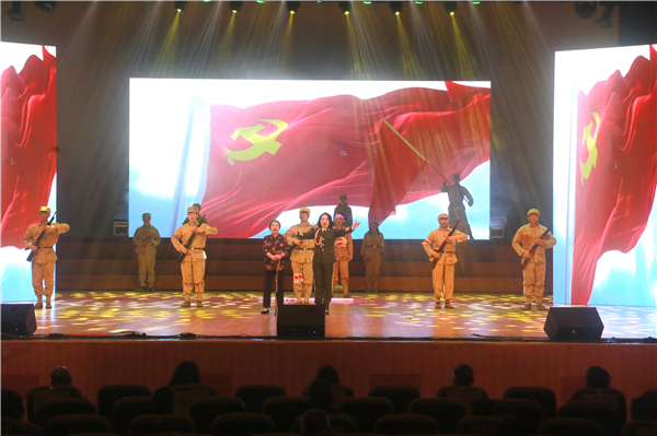 “为什么战旗美如画,英雄的鲜血染红了它;为什么大地春常在,英雄的生命开鲜花!”附属第五医院的节目《英雄赞歌》再现了英雄保家卫国的壮举。