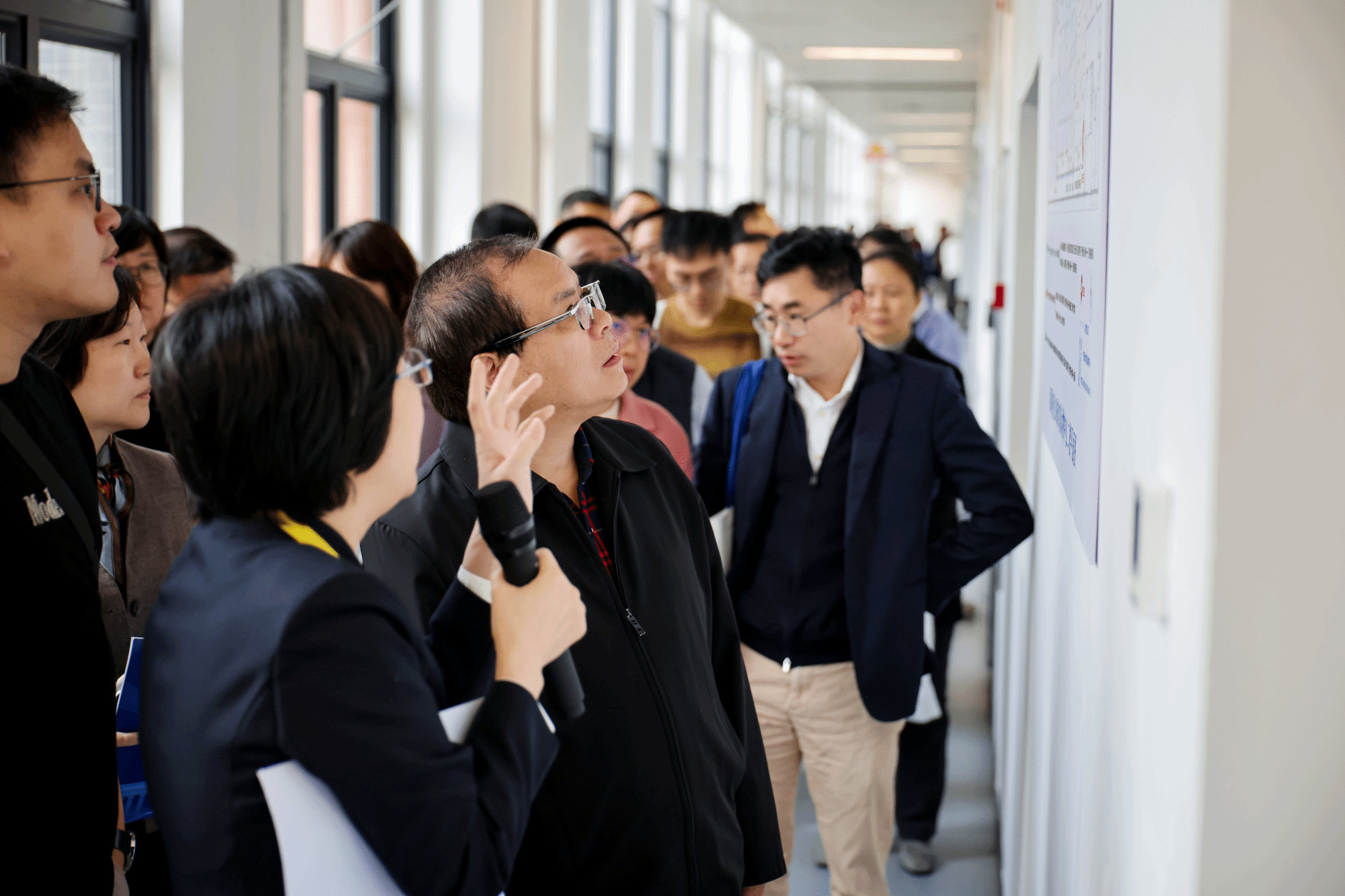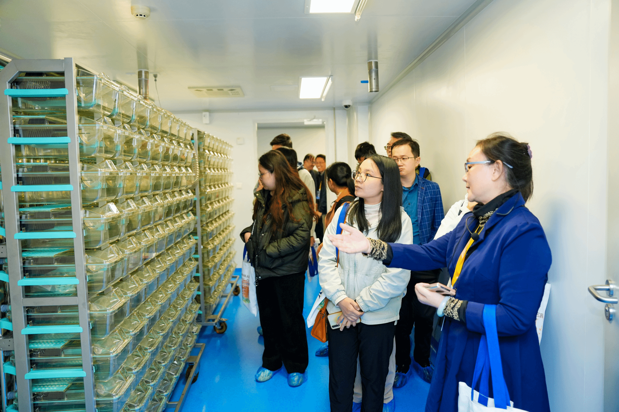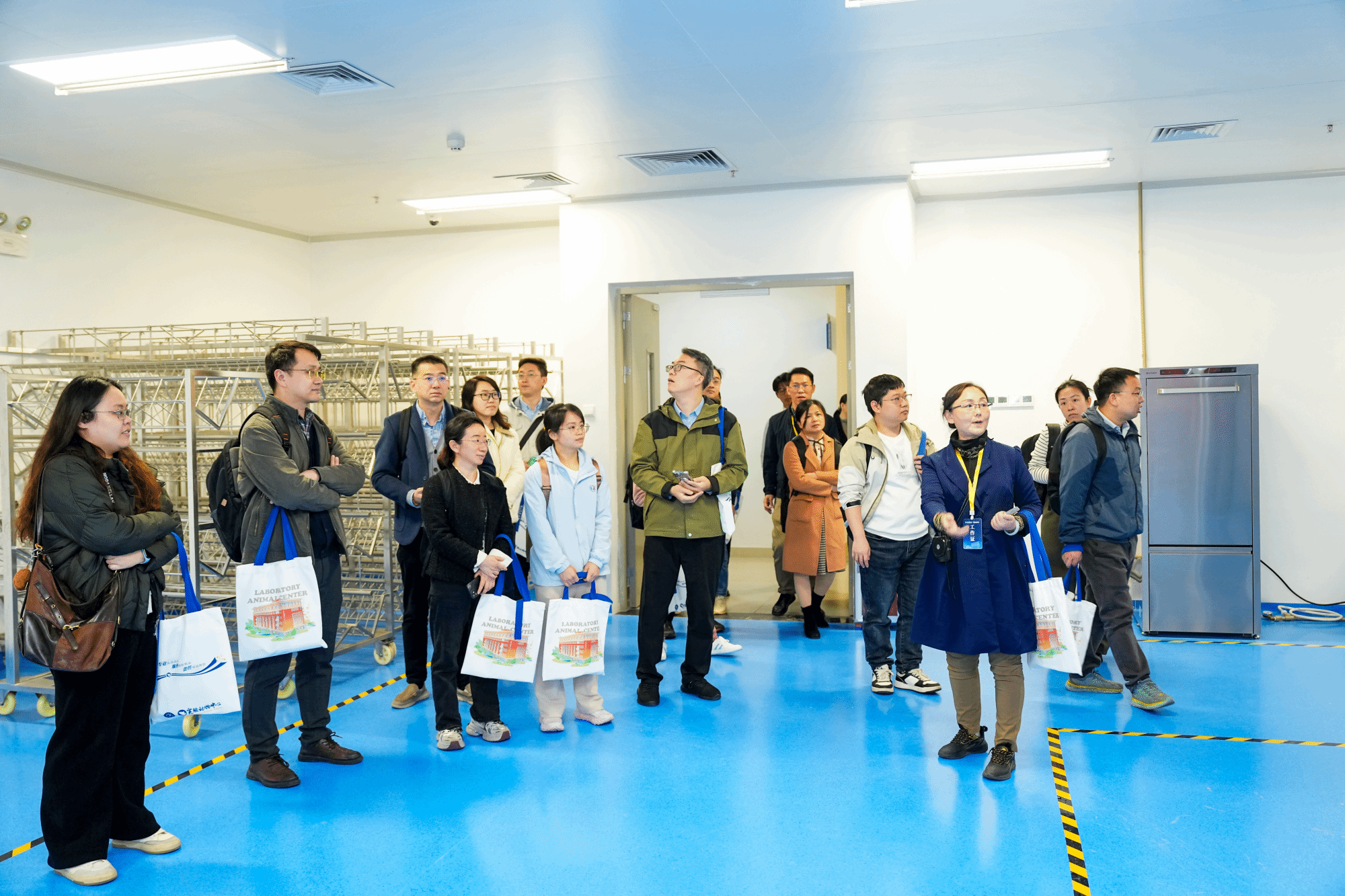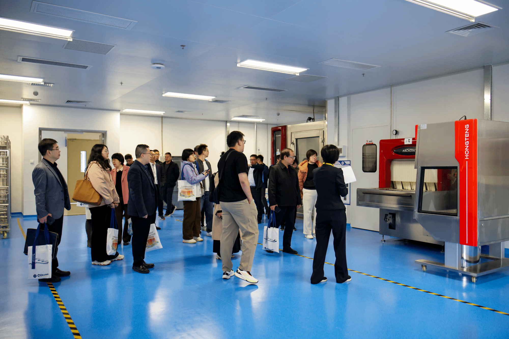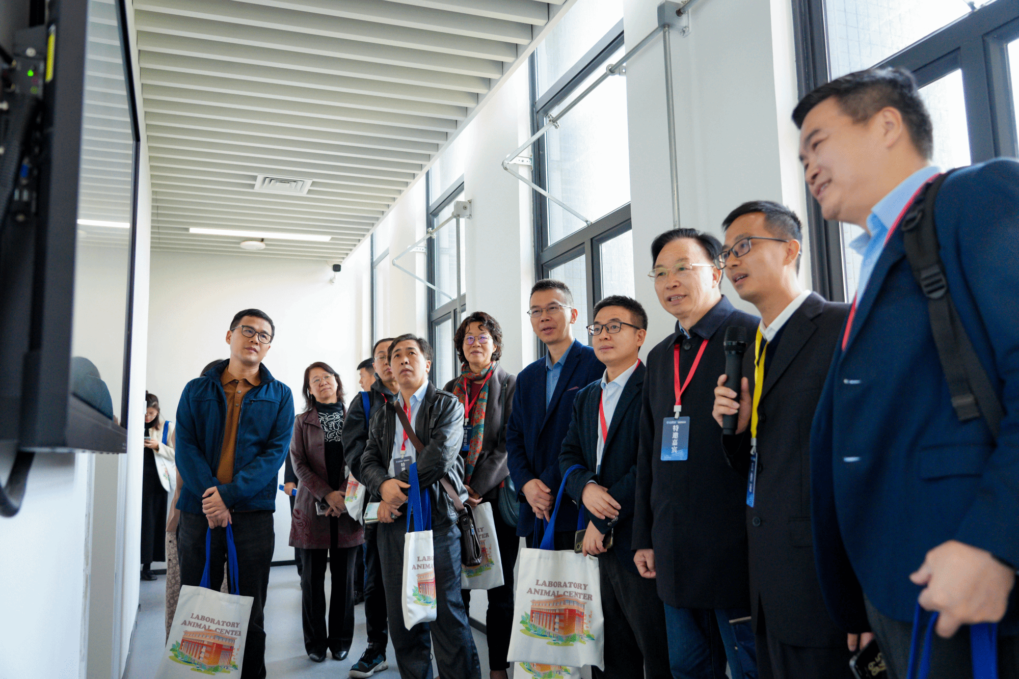 开幕式后,参会嘉宾分三组,沿不同路线参观实验动物中心二期屏障内外设施。通过近距离观察独立通风笼具(IVC)系统、步入式洗笼机、脉动真空灭菌器、隧道式洗笼机、氙光传递窗等先进设备的运行,参会嘉宾了解了实验动物设施运行的标准化管理流程,并对生物安全文化长廊、实验动物福利伦理科普区和六大技术服务平台展示区等文化墙的布置表示肯定。