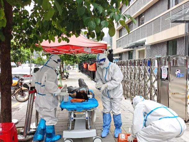 2021年5月下旬,广州荔湾新冠疫情发生,急诊科党支部充分发挥抗疫前沿阵地和战斗堡垒作用。支部书记李艳玲带领党员先锋队深夜集结,进驻封控管理区域,从“战地”急救站的建立到就诊流程的优化,从发热门诊的开启到急危患者的负压转送,再到危重症患者的救治……在驻点支援的30个日夜里,队员们发挥医疗与护理优势,科学研判病情、果断施救。多批医护第一时间主动请缨前往广医附属市八医院隔离病区支援;负压车团队顶着酷暑和严寒24小时值守,两年多以来转运确诊或疑似新冠患者百余人;在常态化疫情防控中,科室人员长期对疫情中高风险和封控管理区域、本地定点收治医院以及海关国门开展支援。