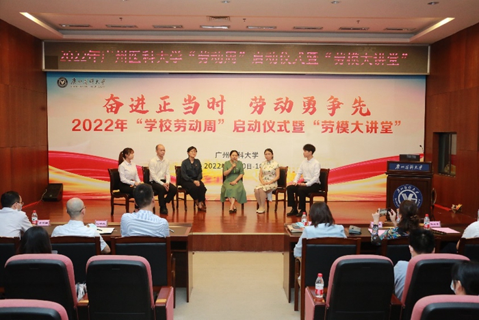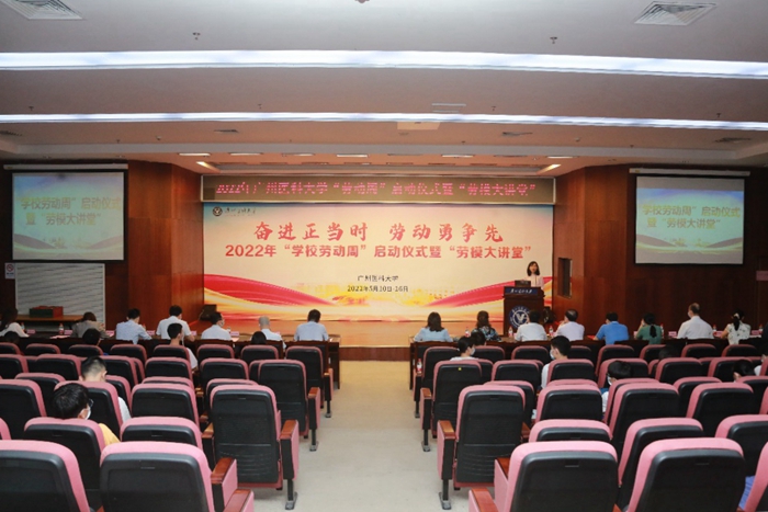 广医在线讯 5月10日至16日为学校2022年劳动周,5月10日晚,劳动周启动仪式和“劳模大讲堂”活动在番禺校区举行。学校赵醒村副校长参加启动仪式并作动员讲话。教务处李建华处长介绍了今年“劳动周”总体安排并公布首批17个校级劳动实践教育基地名单。教务处林爱华副处长主持活动。学校相关职能部门、学院负责人,校级劳动实践教育基地负责人以及学生代表参加本次活动。