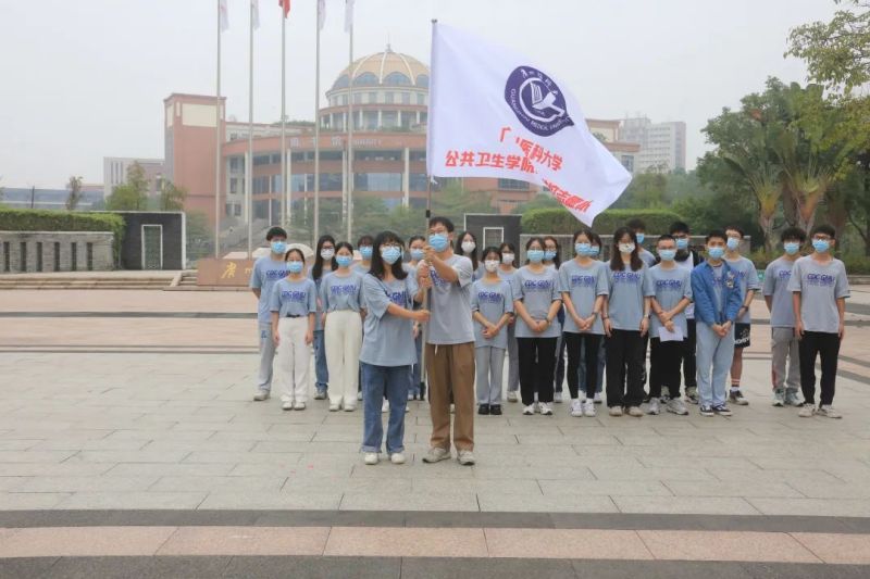 学校党委书记唐小平,校长赵醒村,副校长周麟、李建华和公共卫生学院的老师一起,来到现场为整装待发的同学们加油鼓劲。