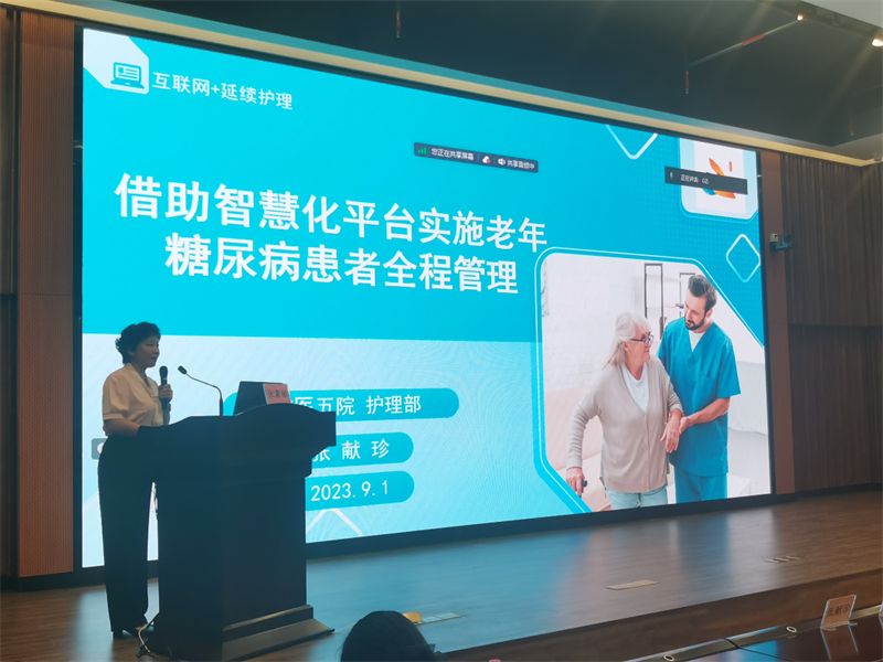 张素敏护士长做了题为《借助智慧平台实现老年糖尿病患者全程管理》的报告。她表示,基于智慧化平台包括标准化代谢性疾病管理中心、持续葡萄糖监测系统、“广医五院血糖”APP——院外延续血糖管理能够实现糖尿病有效的管理,并有助于做好健康饮食与健康行为的指导工作。