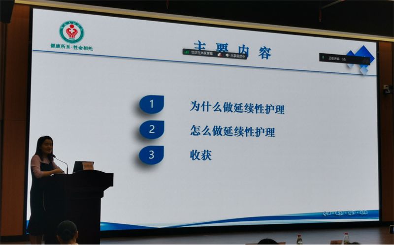 胡碧花主任做了题为《基于问题的延续性护理经验分享》的报告。她表示,基于患者问题进行的延续护理能切实解决患者问题,提升护士个人价值,提高医院社会效益。