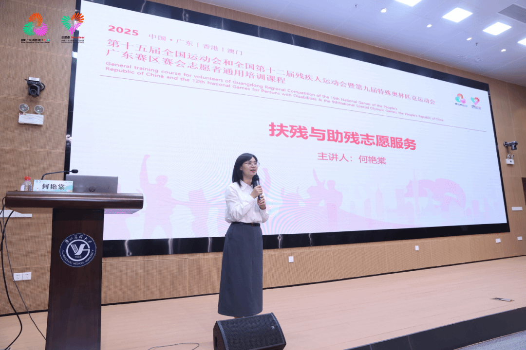 十五运会和残特奥会广州赛区执委会志愿者部副部长刘韵华为全体预录用志愿者做开班仪式动员讲话。她肯定了开云官网近年来在志愿服务领域所取得的成绩,并勉励同学们珍惜服务机会,牢记职责使命;专注投入培训,夯实服务根基;用心提供服务,追求卓越品质。她表示,希望同学们能够真正将培训内容学深悟透,练就过硬技能,为上岗服务打下坚实基础,共同为赛事的成功举办贡献青年力量。