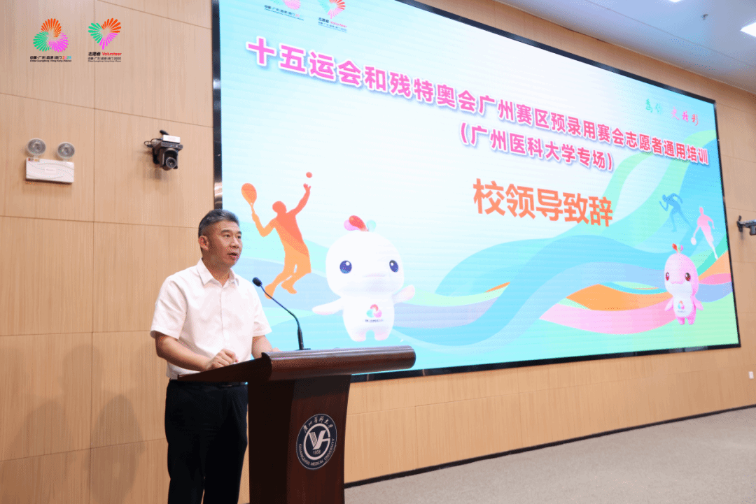 周麟副校长在开班仪式上寄语同学们:一是要提高政治站位,强化责任意识;二是牢记志愿初心,锤炼过硬本领;三是坚守岗位职责,提升服务质效。他指出,希望各位同学立足赛会需求,主动作为,继续发扬广医人精神和南山精神,以更加饱满的工作热情、更加专业细致的服务投入到后续赛会志愿服务工作中。