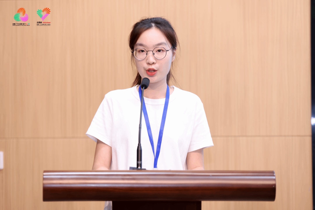 来自公共卫生学院2023级预防医学专业的王淑楠同学代表全体志愿者发言。她表示,将以空杯心态参与培训,努力成长为一名“政治素质高、专业能力强、气质形象佳”的全运会志愿者。