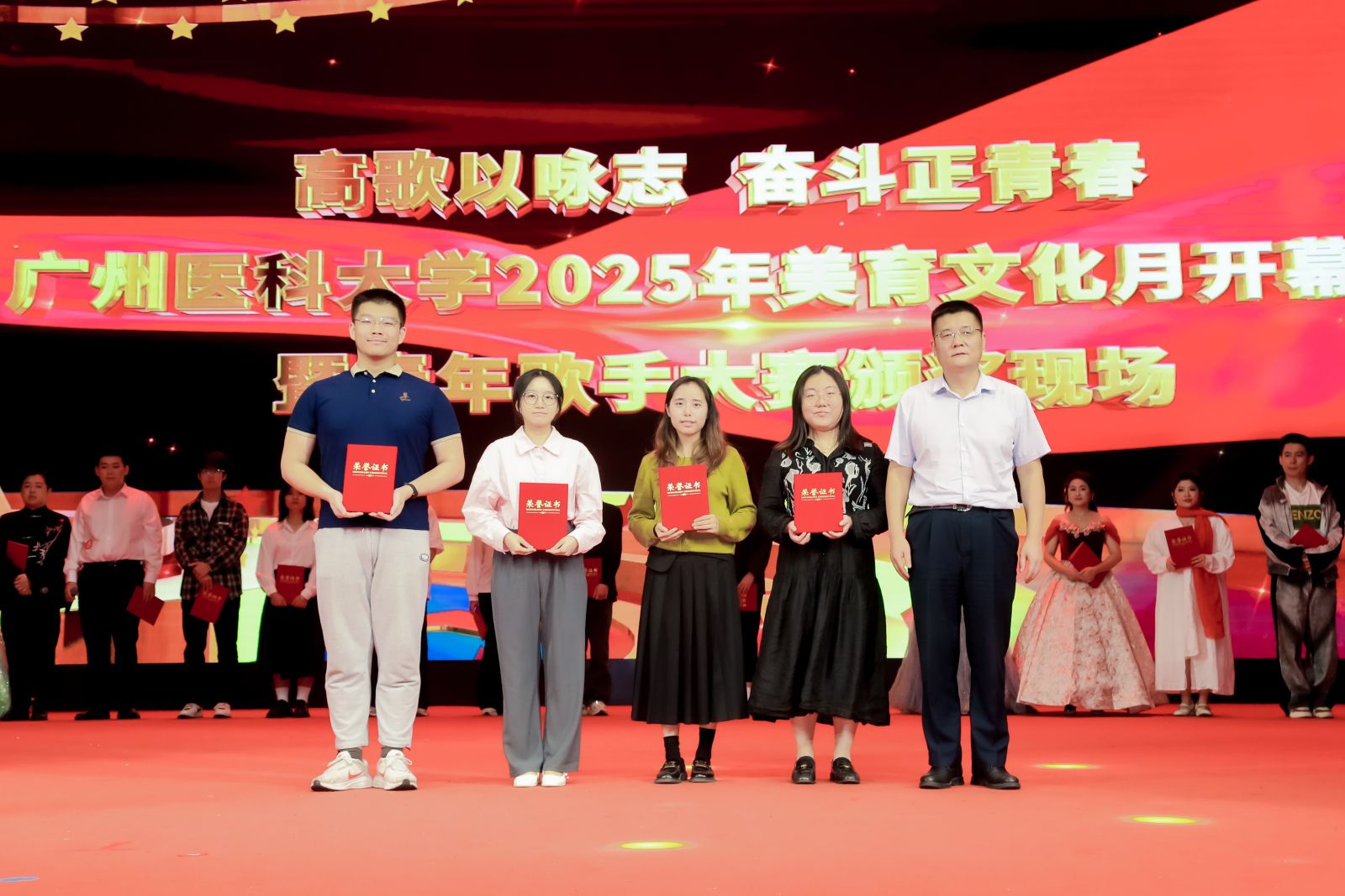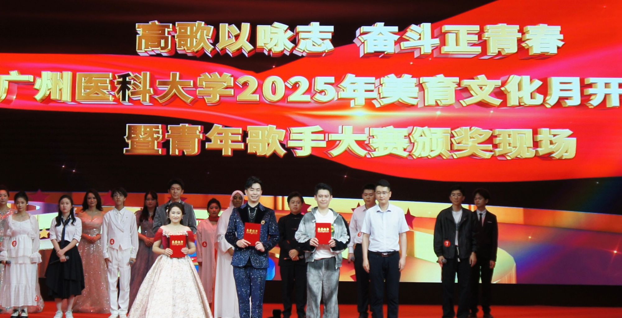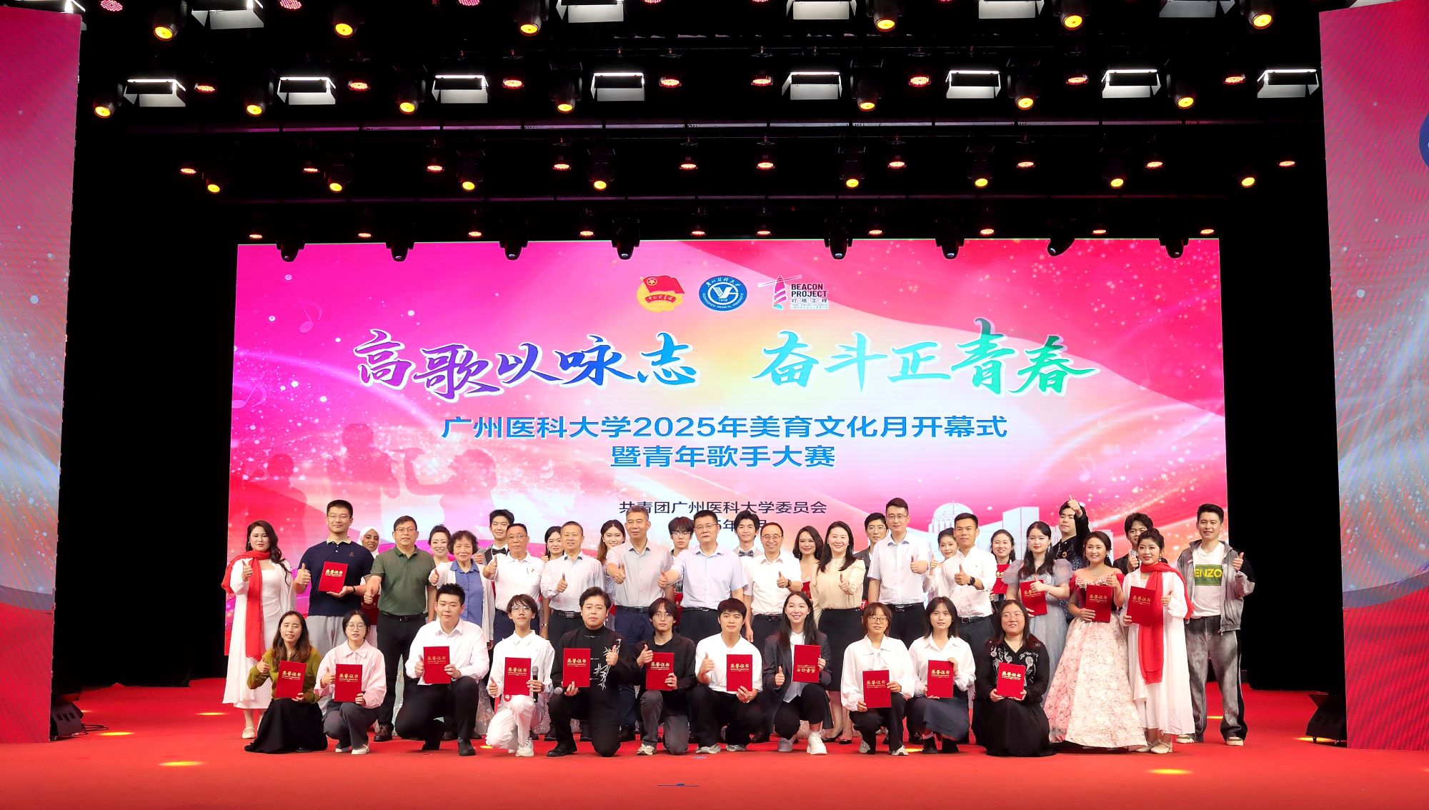 4月27日,由学校团委主办的“高歌以咏志 奋斗正青春”开云kaiyun官方网站2025年美育文化月开幕式暨青年歌手大赛在番禺校区礼堂拉开帷幕。校长赵醒村,副校长周麟,关工委,党委办公室、党委宣传部、医院管理处、学校团委等职能部门相关负责人,各直属团组织的负责人,团员青年代表等1000余人齐聚一堂、共赴视听盛宴。
