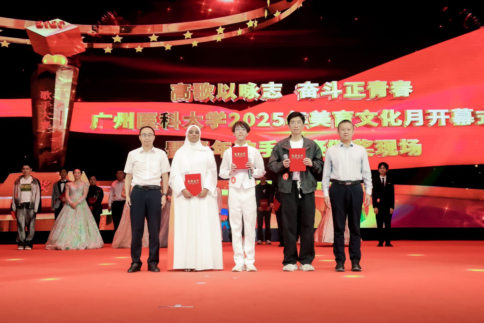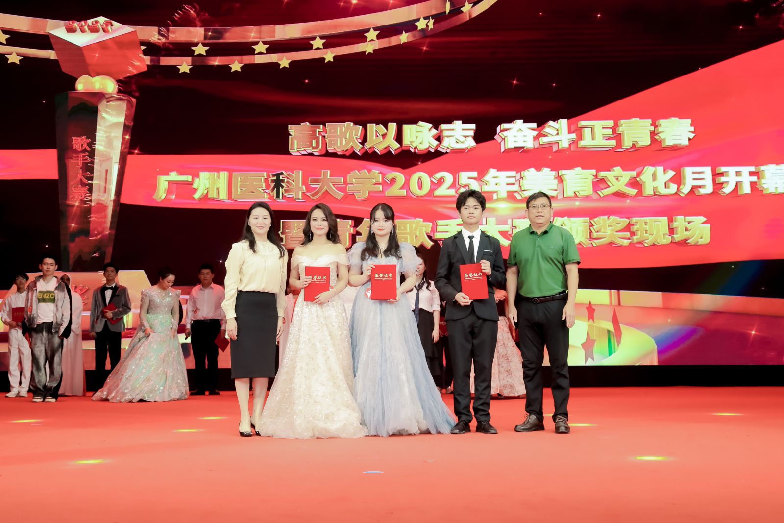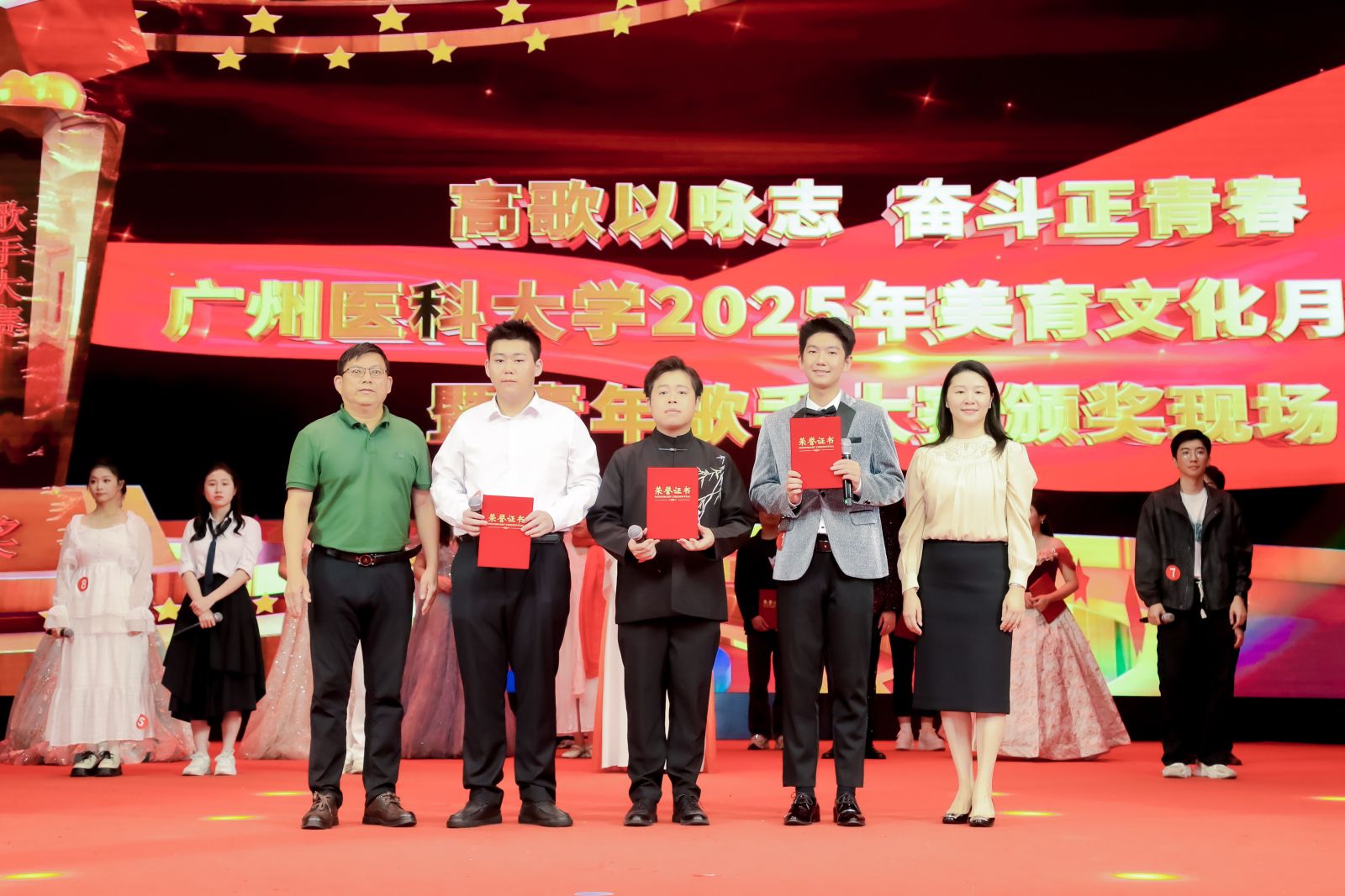 4月27日,由学校团委主办的“高歌以咏志 奋斗正青春”开云kaiyun官方网站2025年美育文化月开幕式暨青年歌手大赛在番禺校区礼堂拉开帷幕。校长赵醒村,副校长周麟,关工委,党委办公室、党委宣传部、医院管理处、学校团委等职能部门相关负责人,各直属团组织的负责人,团员青年代表等1000余人齐聚一堂、共赴视听盛宴。