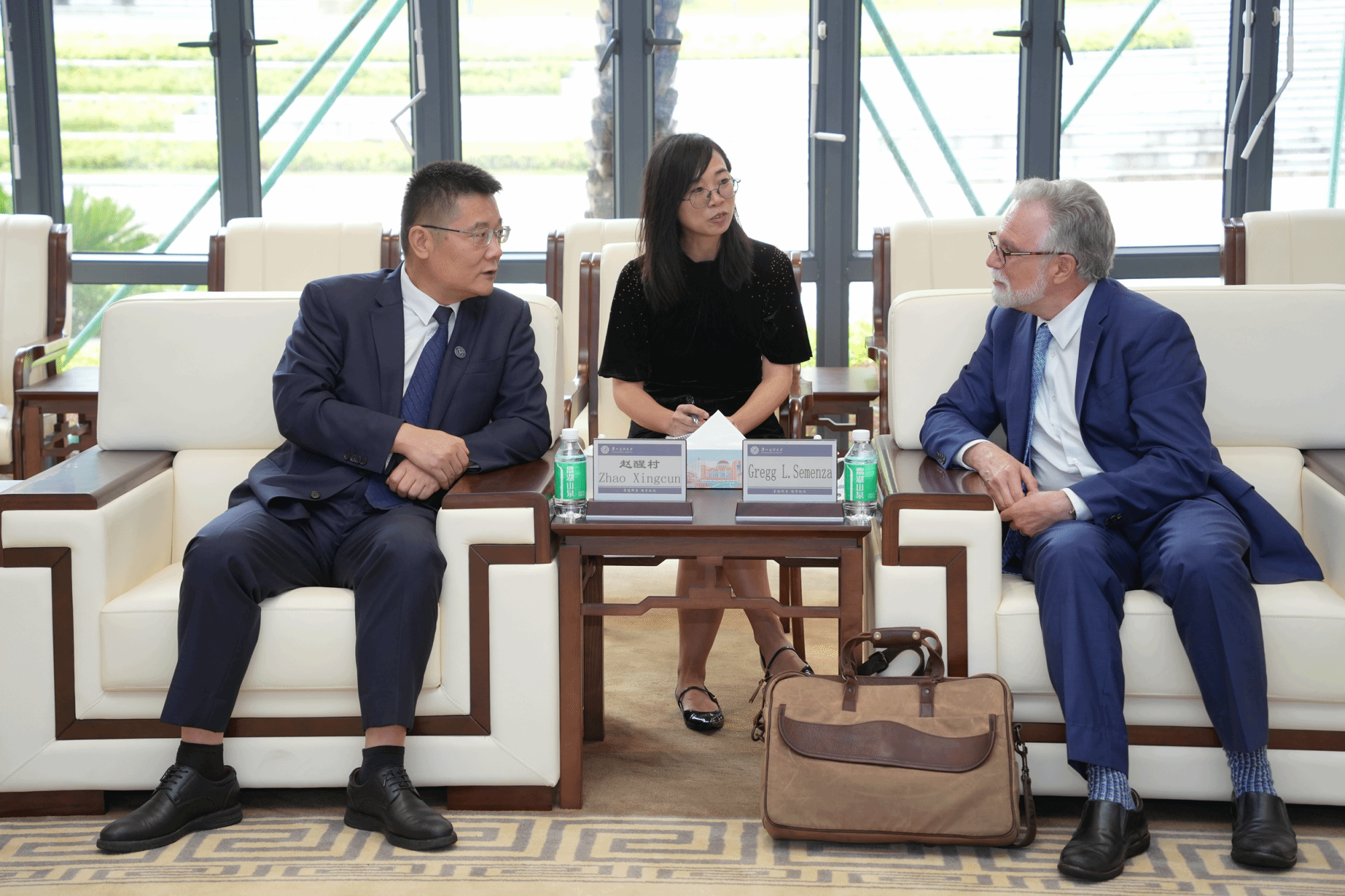 校长赵醒村及相关部门负责人与Gregg L. Semenza教授进行座谈交流。双方围绕科研合作、国际交流及高层次人才培养等探讨合作意向。