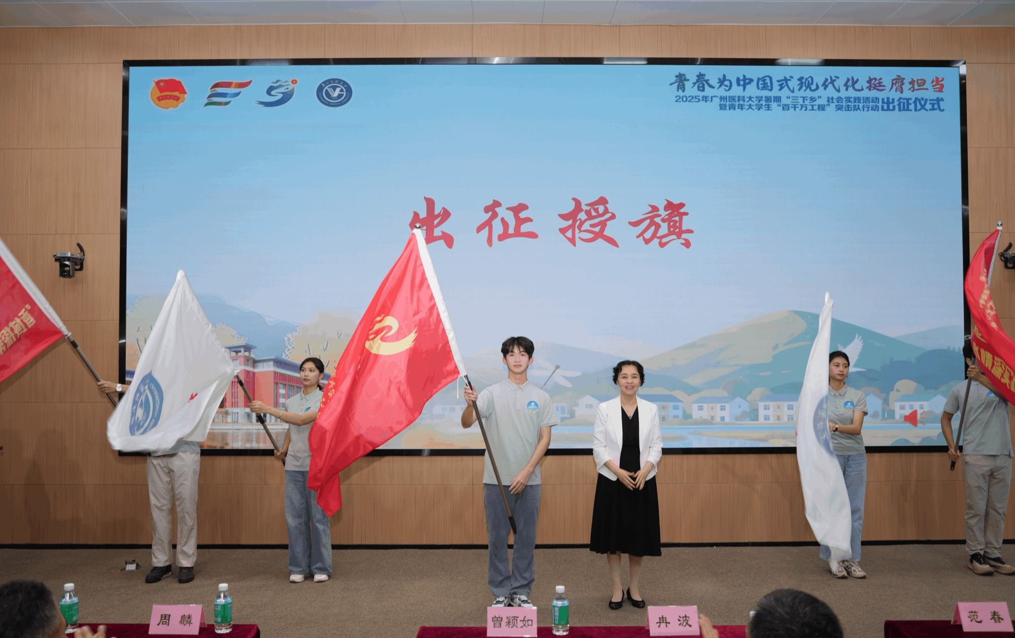学校党委书记曾颖如为突击队学生代表授旗,标志着这场以“教育、长才干、作贡献”为核心的青春实践之旅正式启航。