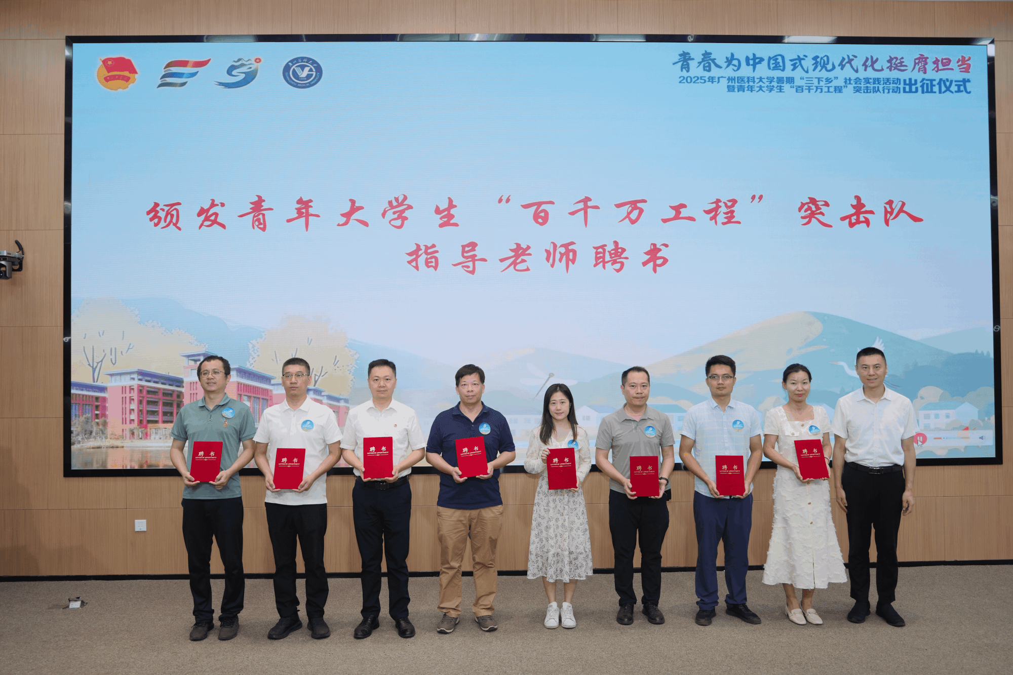 曾颖如书记向团省委一直以来对开云官网青年工作的关心和指导表示衷心感谢。她希望同学们胸怀家国担使命,在服务社会中淬炼真本领,让社会实践成果赋能学校发展、助力地方建设。学校相关部门要坚持赋能导向,形成育人合力,构建全年常态化、可持续的实践育人机制。她表示,学校党委将把“百千万工程”突击队行动作为引导师生认识国情民情的“大思政课”来推进,进一步加大支持与保障力度,引导广医青年大学生从校园“小课堂”走向田间地头“大课堂”。
