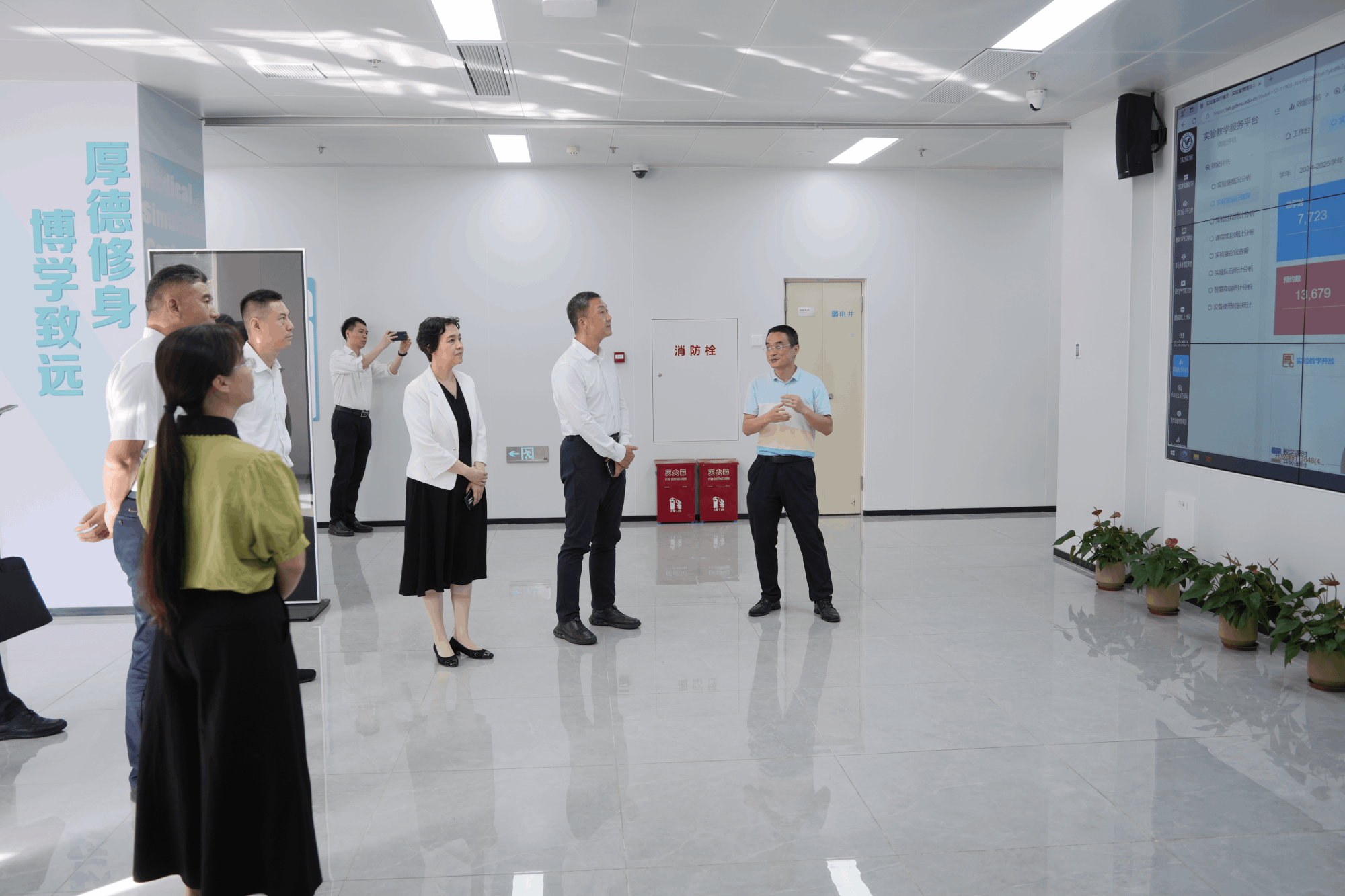 走访参观科技成果展厅和医学模拟教育中心