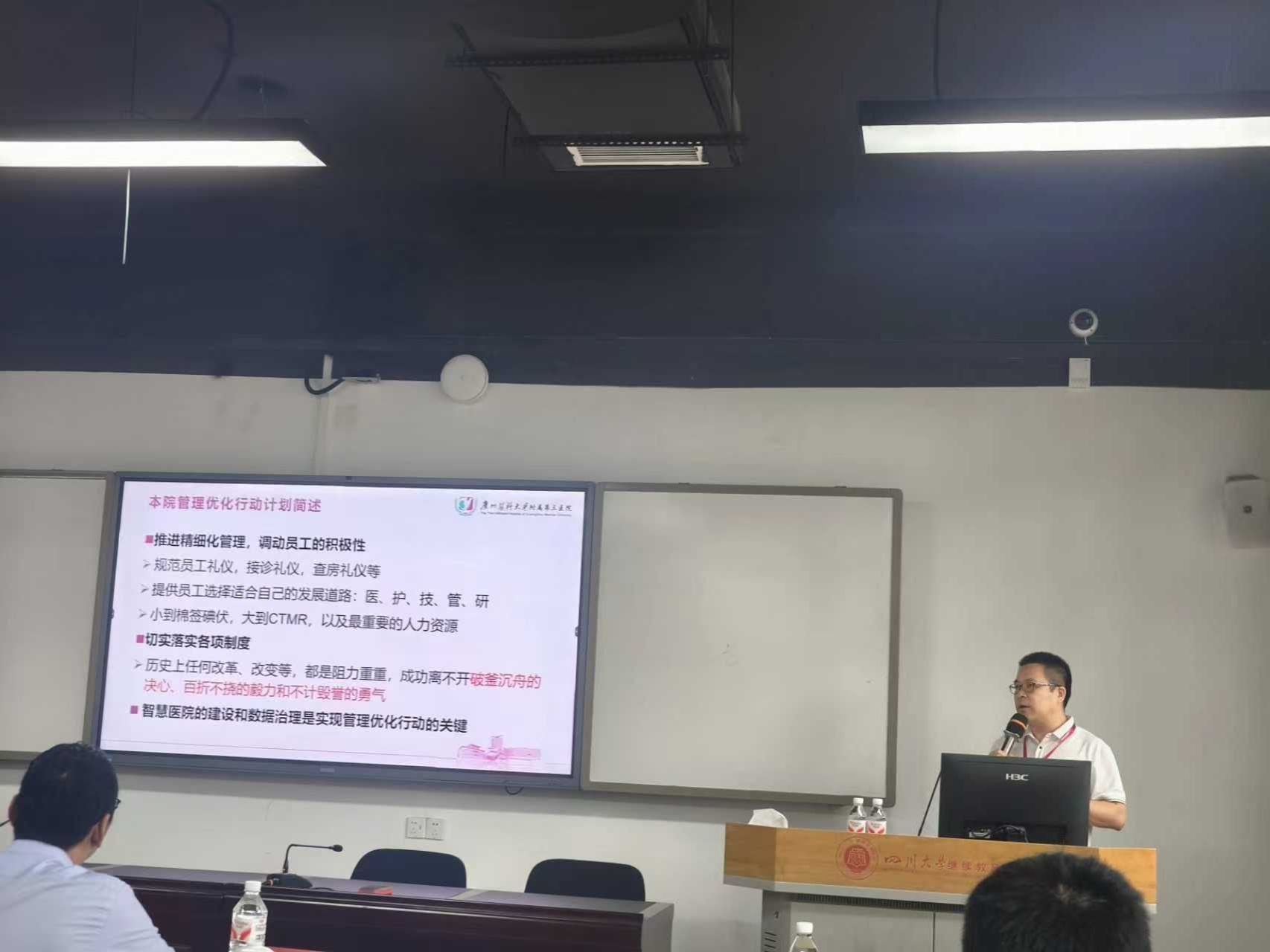 在集中授课环节,四川大学华西医院、四川大学华西医院资阳医院、四川大学华西上锦医院、四川大学华西医院雅安医院的资深管理专家倾囊相授。他们结合实际医院工作中的优秀成果与典型案例,将理论知识与实践智慧深度融合,带来《以精细化管理为抓手推进医院高质量发展》《住院医师规范化培训 - 华西经验分享》《医学基层教学组织建设的守己与创新》《医院成本效益管理与实践》《学思践悟医院管理艺术》《医院人才梯队建设与激励机制》《医学科技成果转化》等一系列精彩课程。