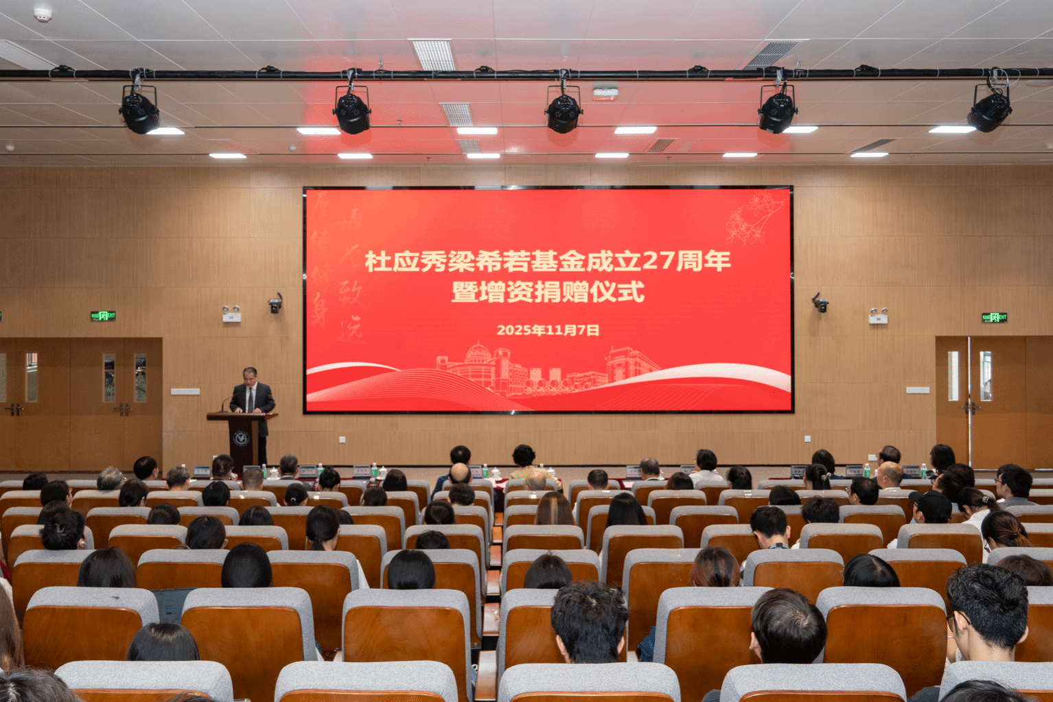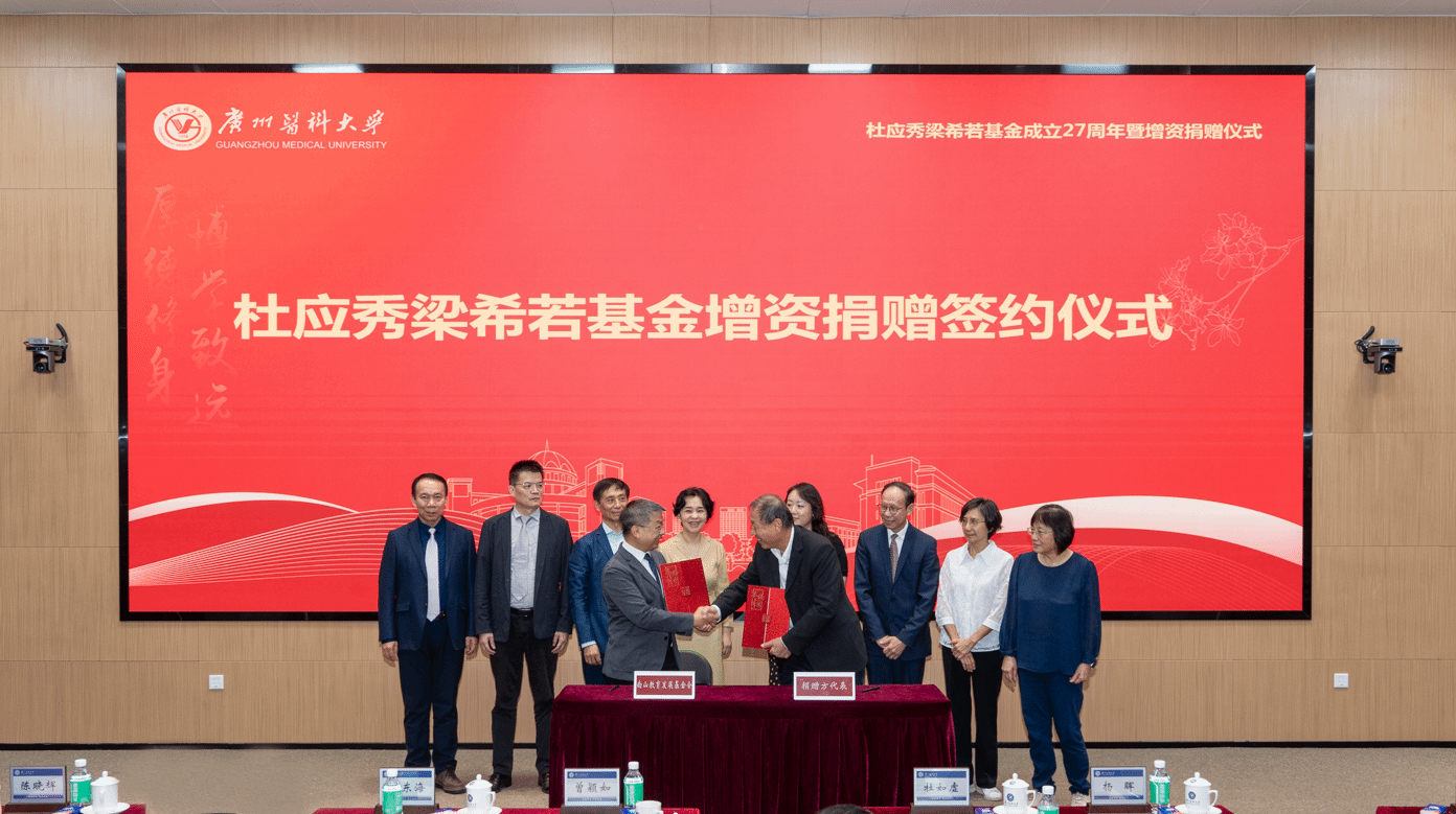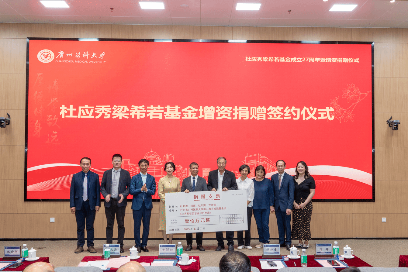 11月7日,杜应秀梁希若基金成立27周年暨增资捐赠仪式在番禺校区举行。两位教授家属代表杜如虚、杜如实、杨晖、方壮霆、方静如,学校党委书记曾颖如、原副校长魏东海,学校有关部门、南山教育发展基金会、公共卫生学院负责人,师生代表参加仪式。仪式由学校党委副书记陈晓辉主持。