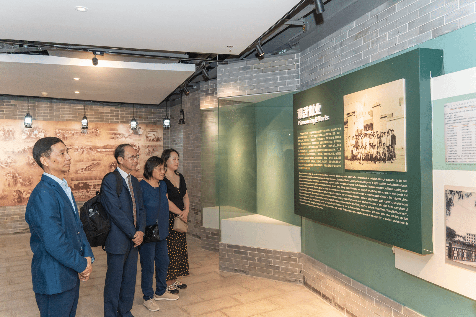 仪式前,杜如实、方壮霆等校友和魏东海教授等到公共卫生学院、校史展览馆参观