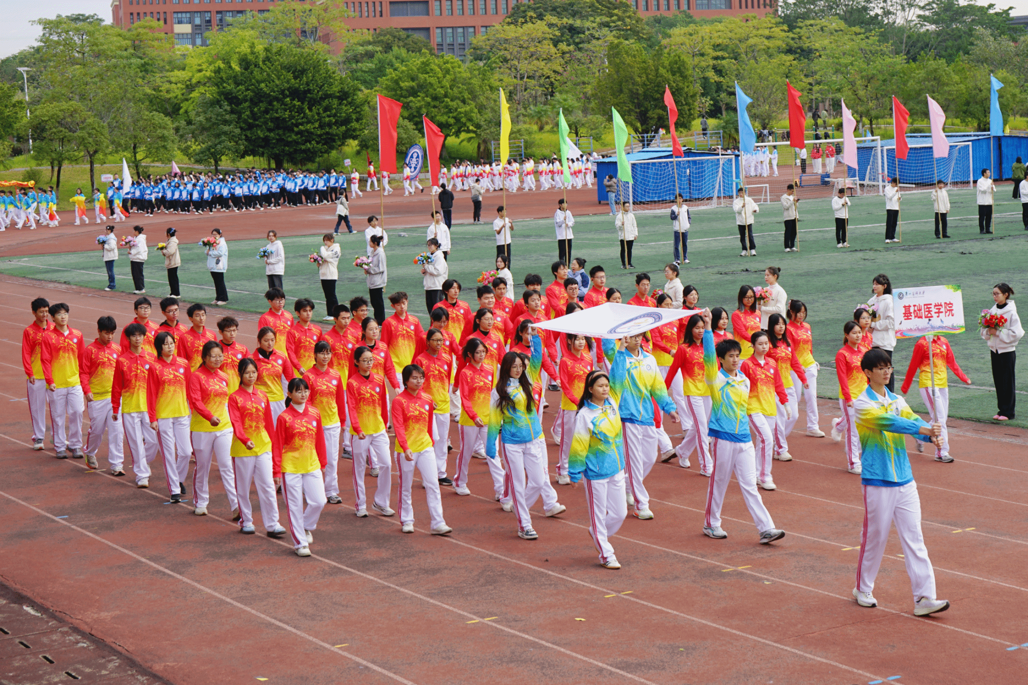 晨光洒落绿茵地,激情点燃广医,校园运动健儿热血沸腾,拼搏的汗水与团结的力量都将在此见证!开云kaiyun官方网站第57届学生运动会正式开幕!