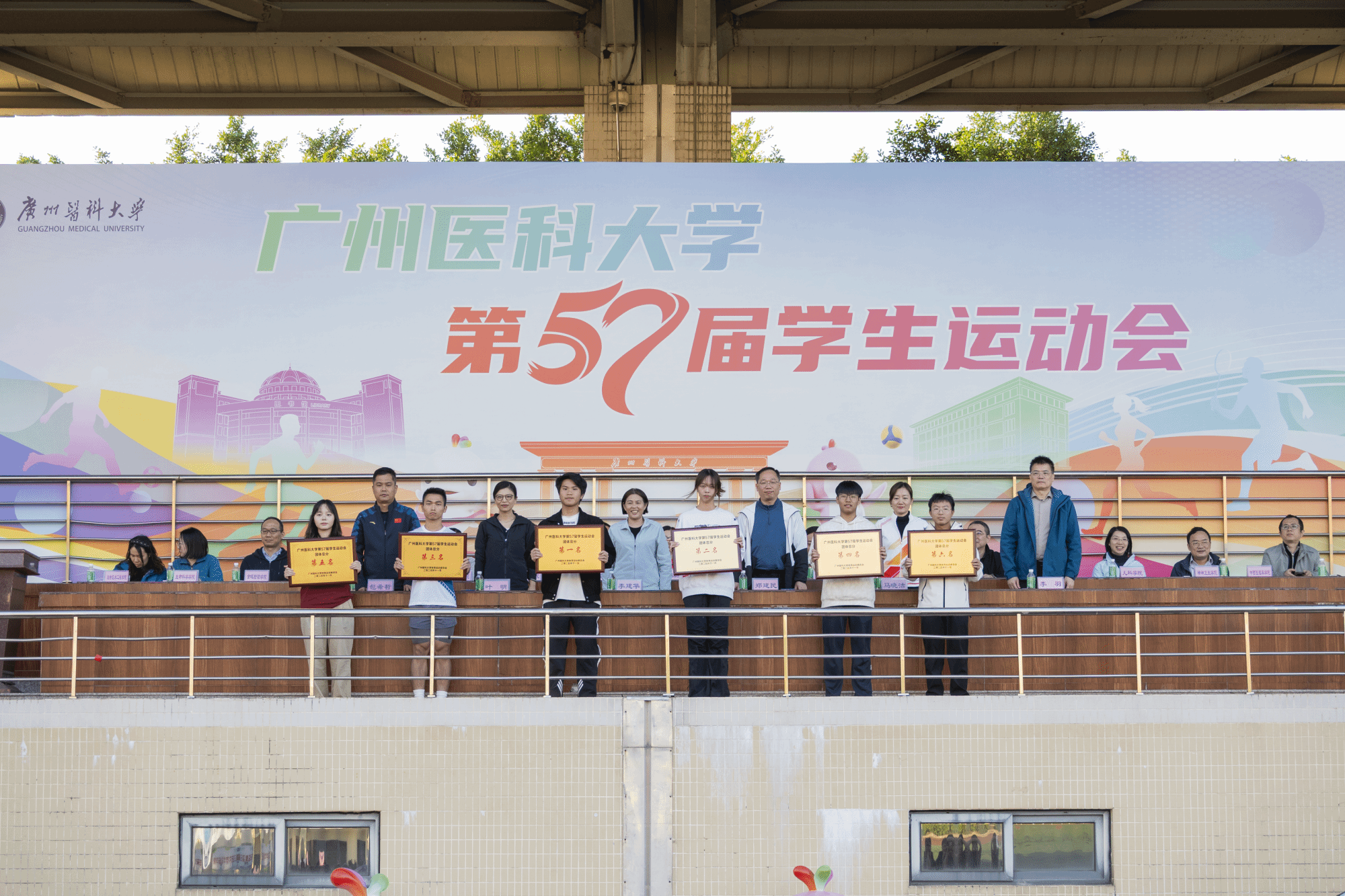 在第57届校运会上,各学院和个人取得了优异的成绩:第二临床学院获男子、女子团体总分第一名。第二临床学院获团体总分第一名,公共卫生学院、第三临床学院、第一临床学院、药学院、第五临床学院分别获团体总分第二、三、四、五、六名。口腔医学院、第二临床学院、护理学院、国际教育学院、研究生院、公共卫生学院获体育道德风尚奖。南山学院徐晨涛打破男子跳高的广医记录。第五临床学院程志伟打破男子5000m的广医记录、校运会记录,以及男子1500m的校运会记录。儿科学院向文乐打破男子200m的校运会记录。护理学院许伟山打破男子400m的校运会纪录。